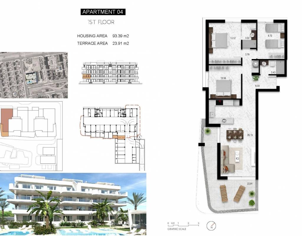 Complejo de 24 apartamentos y áticos de 2 y 3 dormitorios, 2 baños, con grandes zonas comunes, jardín y zona de juegos alrededor, gran piscina (incluyendo zona infantil y jacuzzi) relax/BBQ, gimnasio y zona de Coworking, aseo público y parking subterráneo.