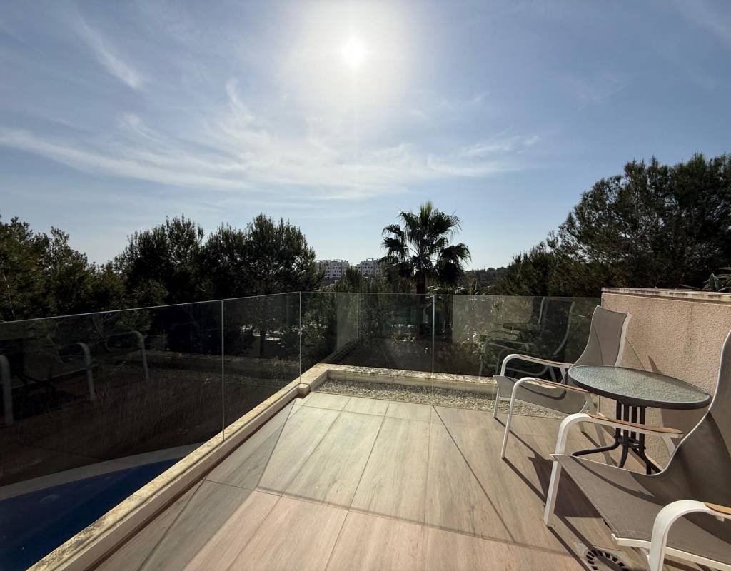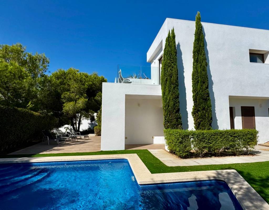 Esta villa tiene un excelente diseño interior y exterior, dotada de equipamiento de primera calidad. La villa está construida sobre una parcela de 783m2 y se distribuye en dos plantas con 3 dormitorios y 2 baños. La propiedad tiene un gran jardín privado con una piscina privada y una plaza de aparcamiento exterior. Hay hermosas vistas abiertas al mar desde la terraza de la primera planta. La propiedad también tiene una piscina comunitaria con fantásticas vistas de la zona y el mar.