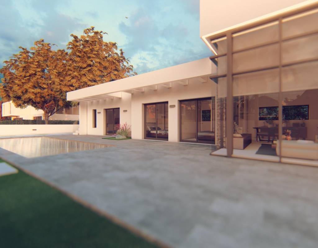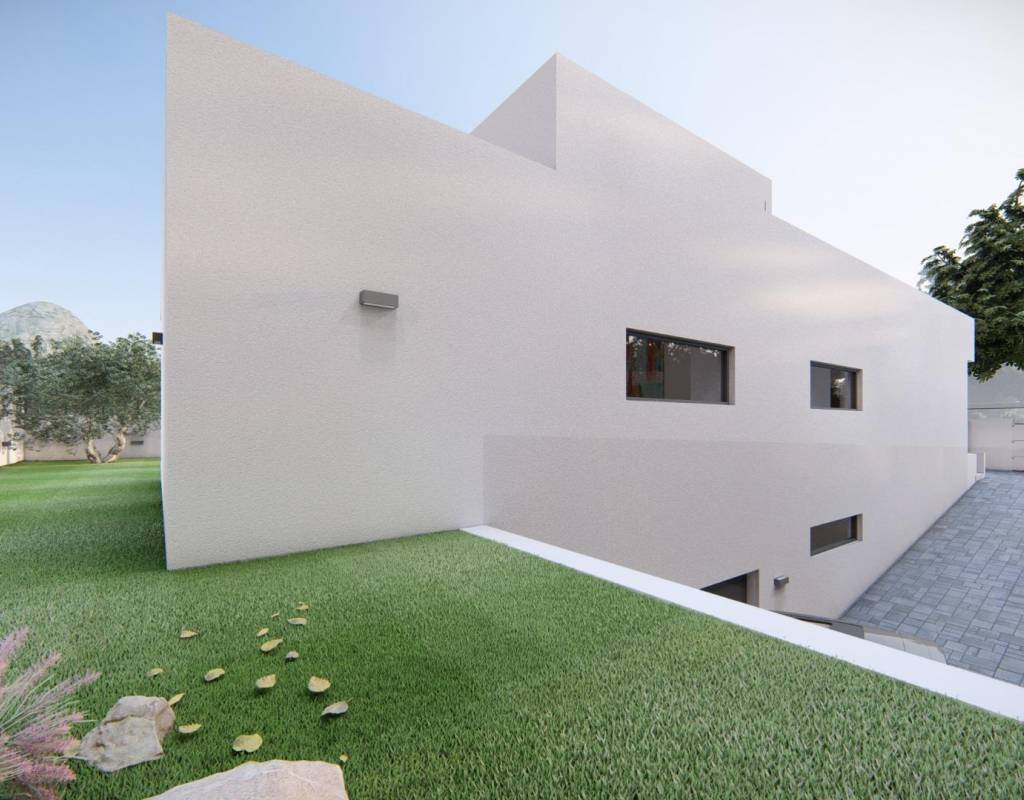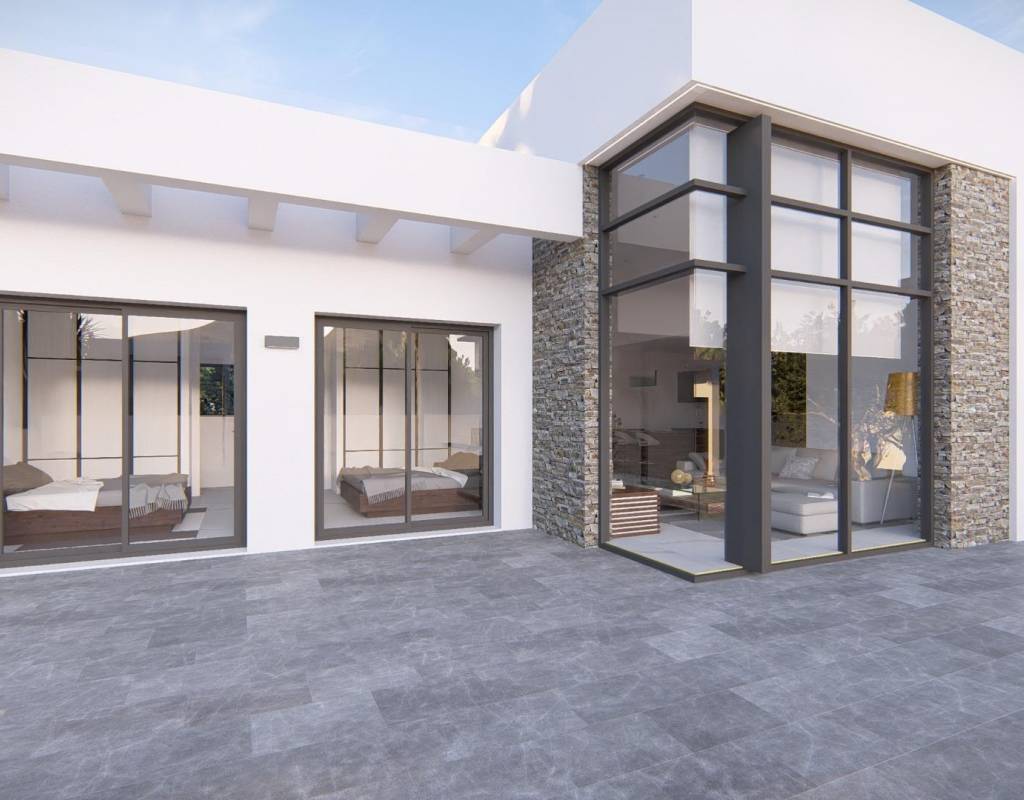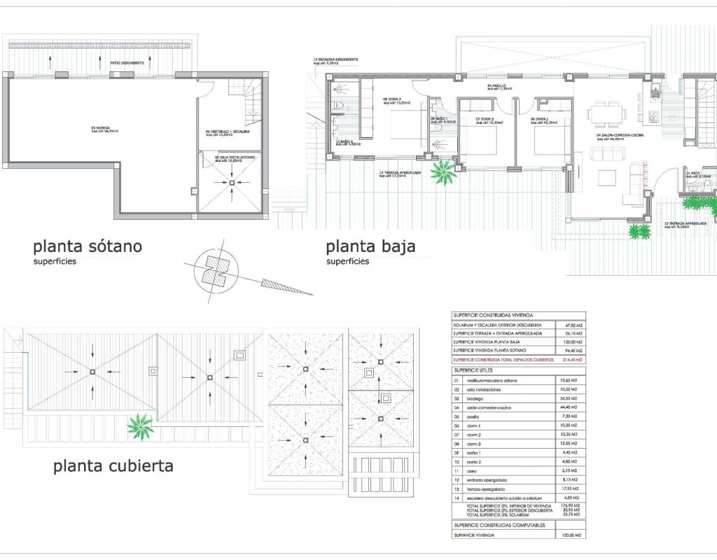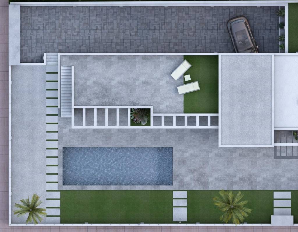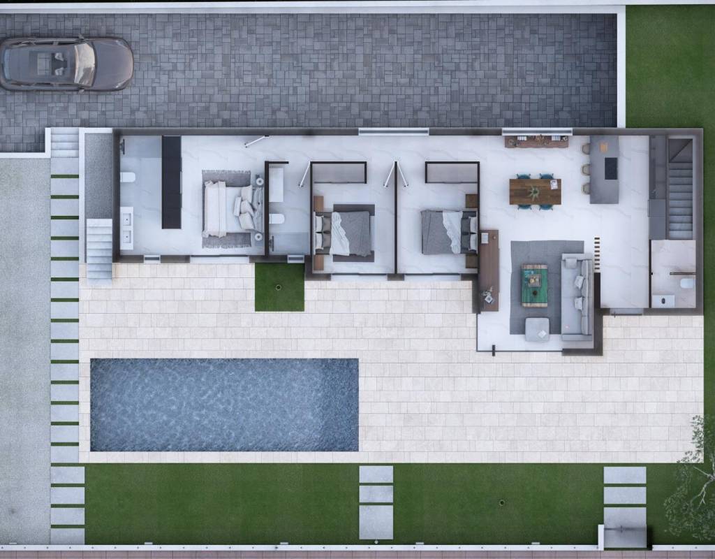 Construida en una sola planta más un sótano, la villa cuenta con 3 dormitorios, 2 baños (uno en suite) y 1 aseo de invitados. La amplia zona de estar diáfana conecta la moderna cocina totalmente equipada con el comedor y el salón, todo ello con acceso a una preciosa terraza con una piscina privada de 9,5 x 3,3 m. El sótano incluye un garaje para dos coches y espacio de almacenamiento adicional. Una escalera exterior conduce a un solárium privado en la azotea de aproximadamente 60 m², ideal para tomar el sol o disfrutar de las vistas panorámicas.