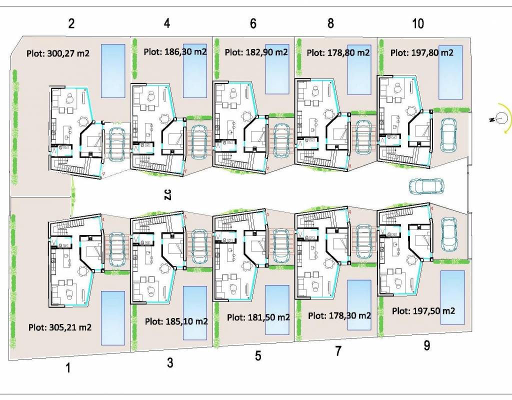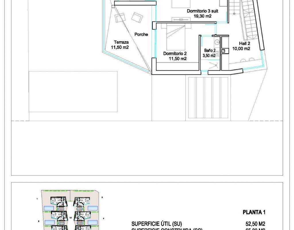 Cada villa se distribuye en dos plantas más un solárium en la azotea e incluye: