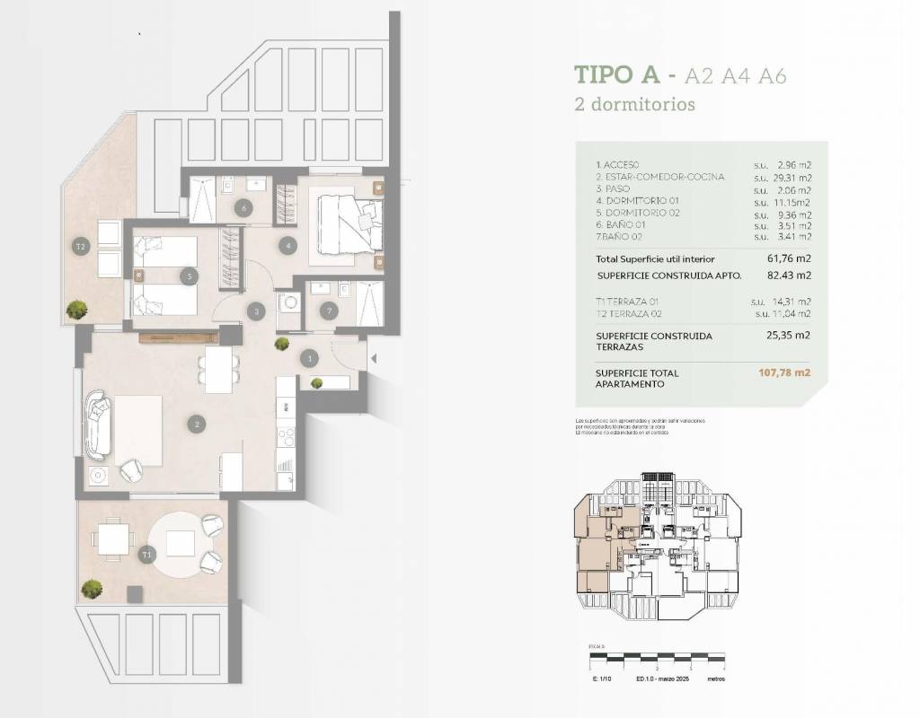 Este exclusivo complejo cuenta con dos elegantes torres de 15 plantas, que ofrecen una selección de apartamentos de 2, 3 y 4 dormitorios. Todas las viviendas incluyen una plaza de aparcamiento subterráneo privado y trastero, y están diseñadas para maximizar la luz natural y las vistas panorámicas del mar Mediterráneo y la laguna de Las Salinas, especialmente desde la séptima planta en adelante.