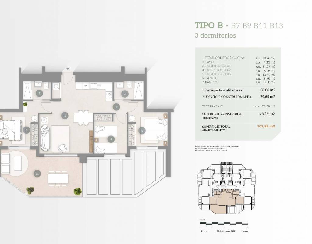Este exclusivo complejo cuenta con dos elegantes torres de 15 plantas, que ofrecen una selección de apartamentos de 2, 3 y 4 dormitorios. Todas las viviendas incluyen una plaza de aparcamiento subterráneo privado y trastero, y están diseñadas para maximizar la luz natural y las vistas panorámicas del mar Mediterráneo y la laguna de Las Salinas, especialmente desde la séptima planta en adelante.