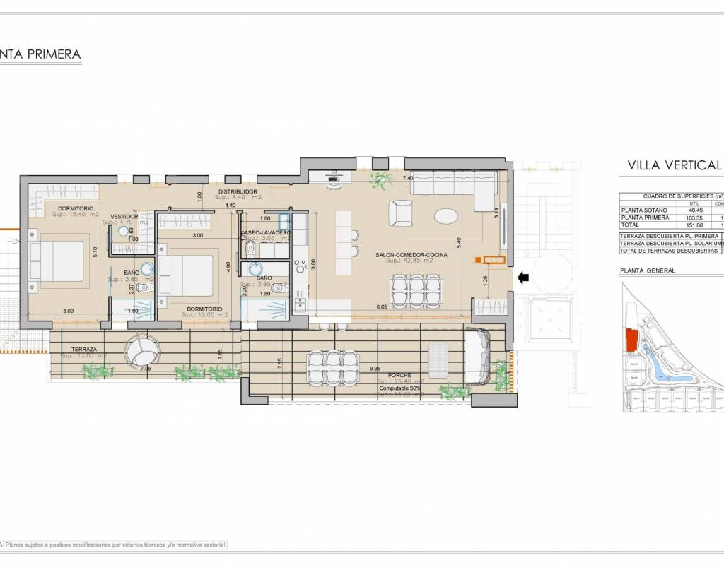 Las villas cuentan con tres amplios dormitorios, cada uno con su propio cuarto de baño en suite. En la planta baja se encuentra un generoso dormitorio, mientras que la planta superior incluye dos dormitorios más con acceso a terrazas privadas. El garaje subterráneo, conectado directamente a la villa, ofrece espacio para al menos dos vehículos y bicicletas, con iluminación y ventilación naturales, además de un generoso espacio de almacenamiento.