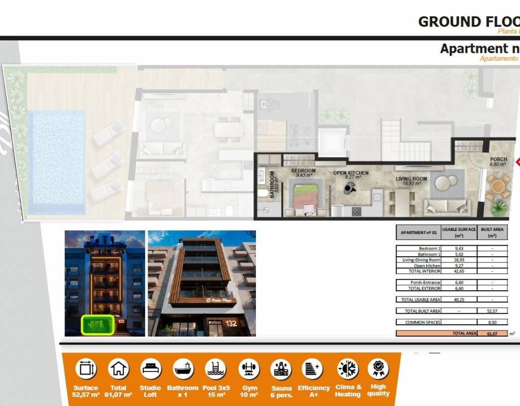 Todos los apartamentos están construidos con materiales y acabados de alta calidad, lo que garantiza tanto el confort como la durabilidad. Las características incluyen: