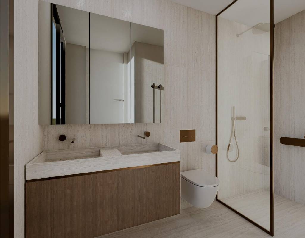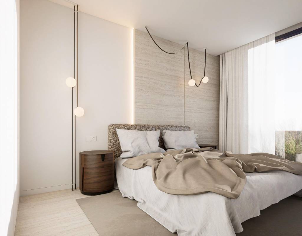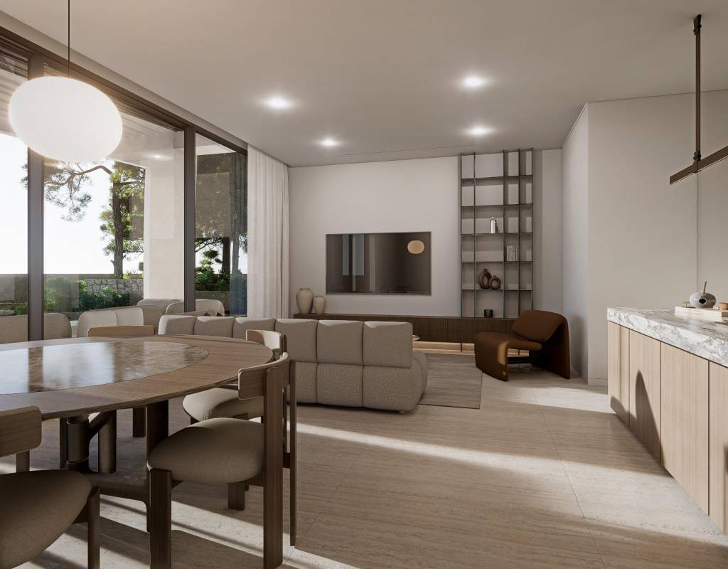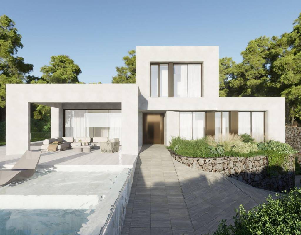 Diseñada pensando en la elegancia y el confort, esta villa se distribuye en dos plantas más un sótano. Cuenta con 3 dormitorios, cada uno con baño en suite, y un aseo de invitados. La planta baja incluye una cocina abierta conectada al salón, dos dormitorios y acceso a una gran terraza con una piscina privada de 60 m2 y un jardín paisajístico. La primera planta ofrece un dormitorio privado en suite, mientras que el sótano incluye un amplio garaje para dos coches con luz natural y ventilación a través de un patio inglés.