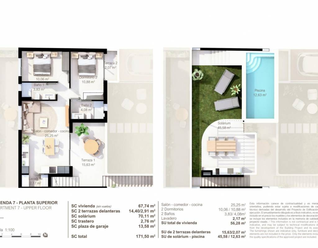 Bungalows ático: con una gran terraza, solárium privado en la azotea con piscina, además de trastero en la planta baja y plaza de aparcamiento privada.