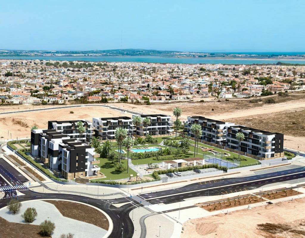 Esta nueva promoción residencial en La Siesta, Torrevieja, ofrece apartamentos amplios y contemporáneos diseñados para ofrecer comodidad y estilo. Las viviendas cuentan con 2 dormitorios y 2 baños (uno de ellos en suite) con amplias terrazas, distribuidas en 7 bloques de baja altura que rodean una impresionante zona comunitaria. La comunidad cerrada ofrece instalaciones de primera clase, como piscinas para adultos y niños, jardines, zona de barbacoa, parque infantil, pista de pádel y zona de petanca, lo que la hace ideal tanto para el descanso como para el ocio.