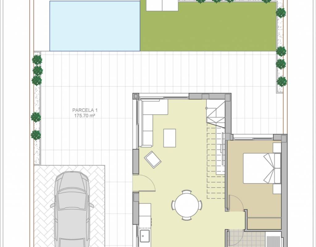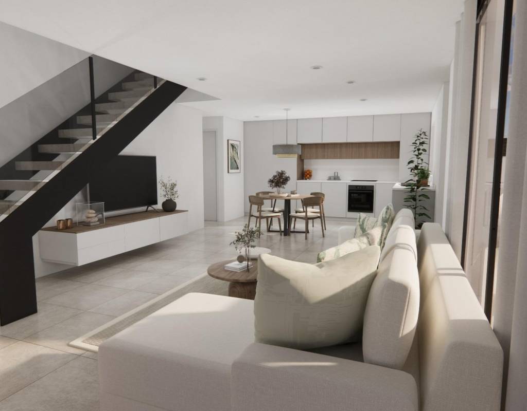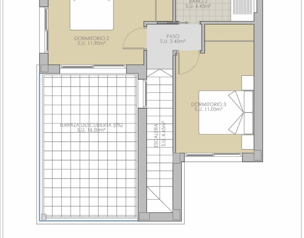Cada villa está diseñada con una distribución contemporánea en dos plantas, con 3 dormitorios y 2 baños. La primera planta cuenta con una terraza descubierta y hay un solárium en la azotea disponible con un coste adicional.