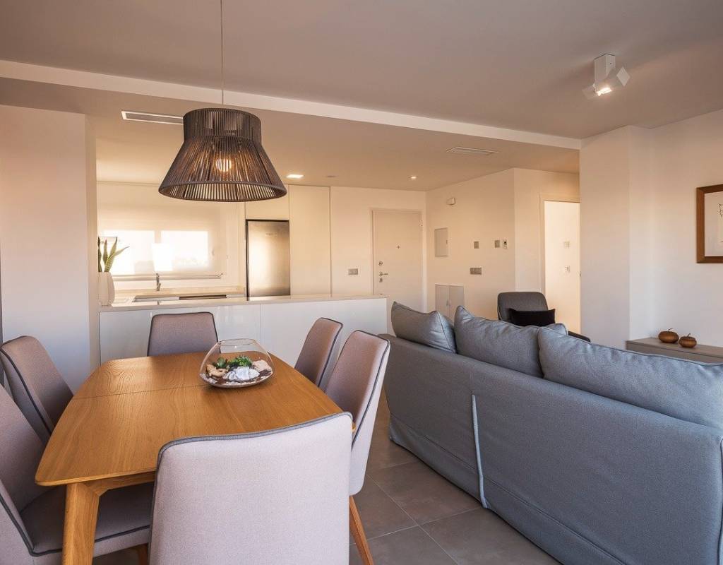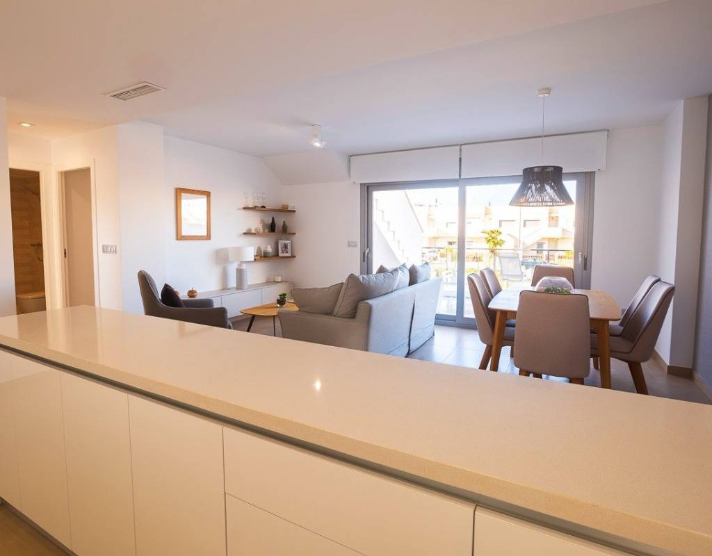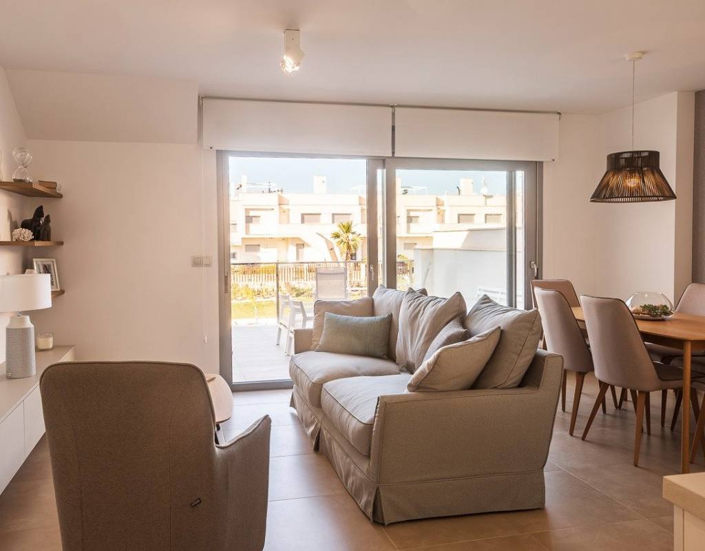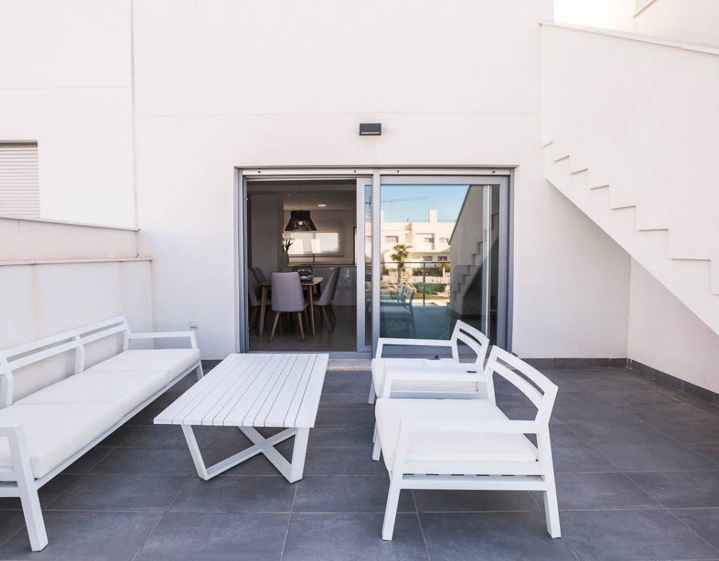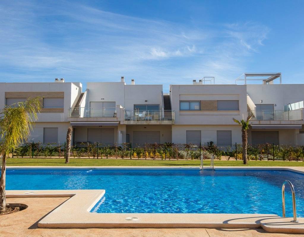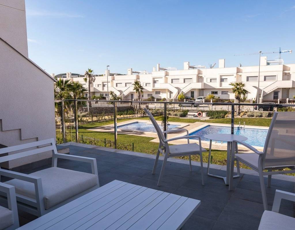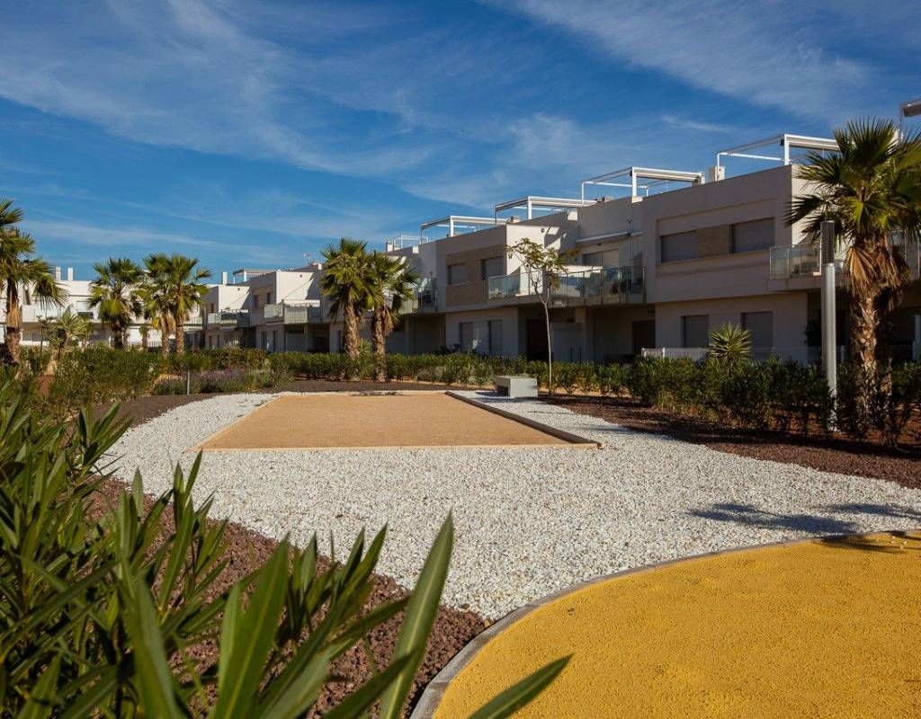 Complejo con instalaciones comunitarias y piscina consta de bungalows de 2 y 3 dormitorios, en planta baja con jardín privado y planta alta con solarium privado, cocina abierta con la zona del salón, armarios empotrados, terraza.