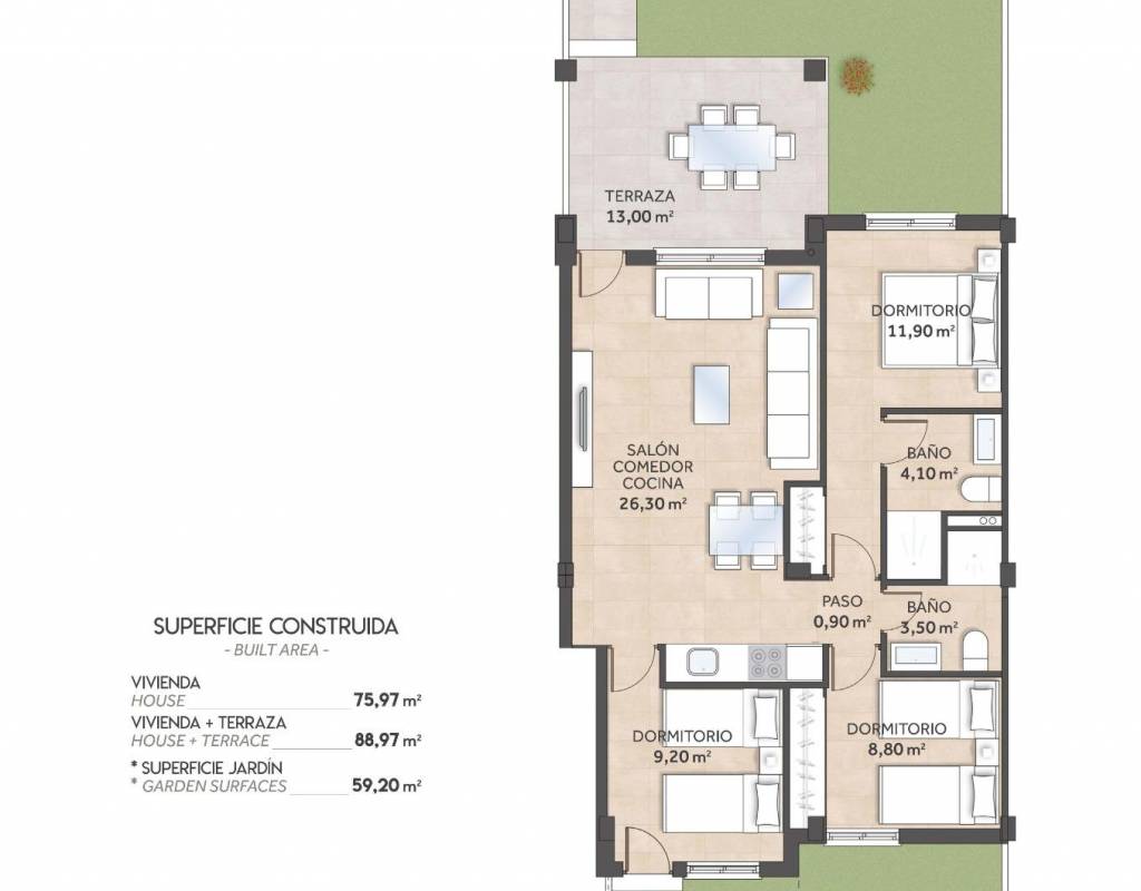 - Parcela: 59m2