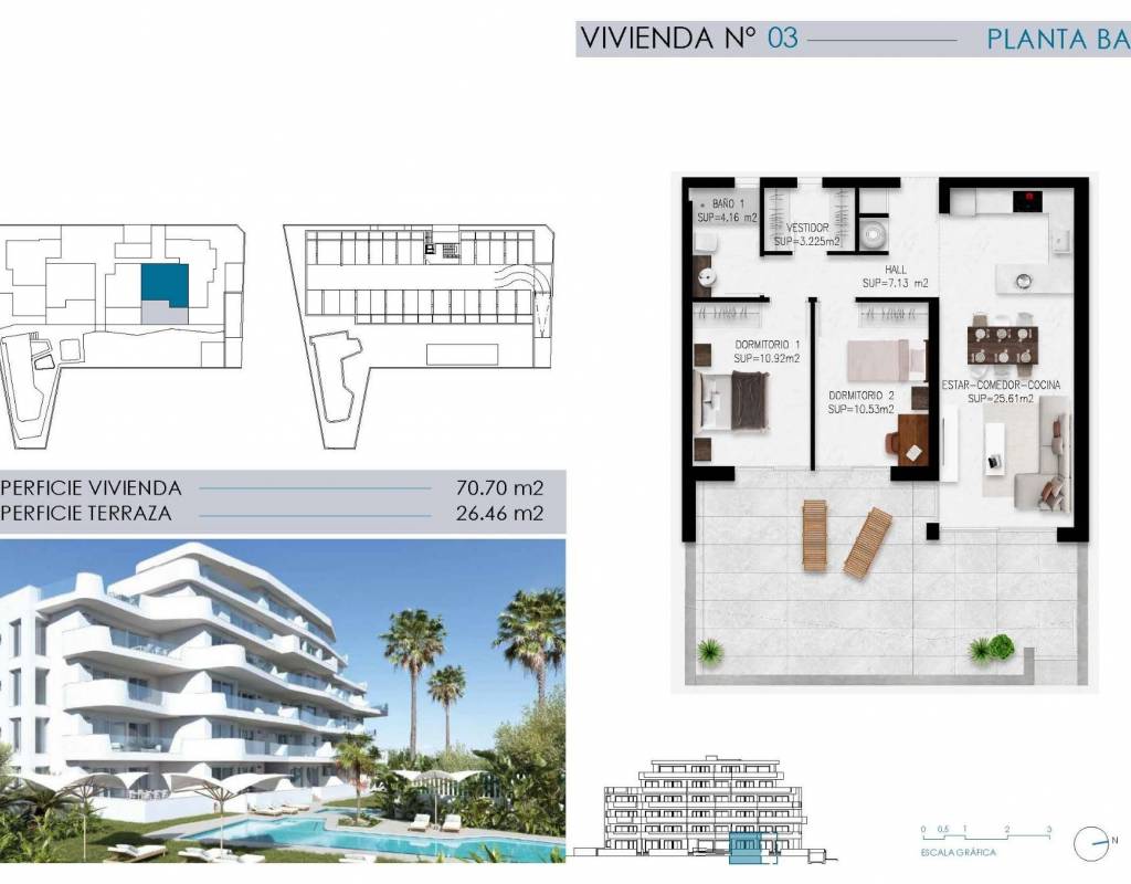 Nueva y exclusiva urbanización boutique de 24 apartamentos turísticos de lujo, ubicada en un enclave privilegiado de la Costa Blanca Sur, en la consolidada urbanización Mil Palmeras, perteneciente al municipio de Pilar de la Horadada (Alicante). Este proyecto se desarrolla en segunda línea de mar, a tan solo 200 metros, junto a una de las mejores playas de la región, en una zona residencial y turística muy demandada por su calidad de vida, entorno natural y completa oferta de ocio. El entorno cuenta con chiringuitos, restaurantes, zonas deportivas, paseos marítimos y amplias áreas verdes, lo que convierte esta ubicación en una de las más atractivas del litoral mediterráneo.