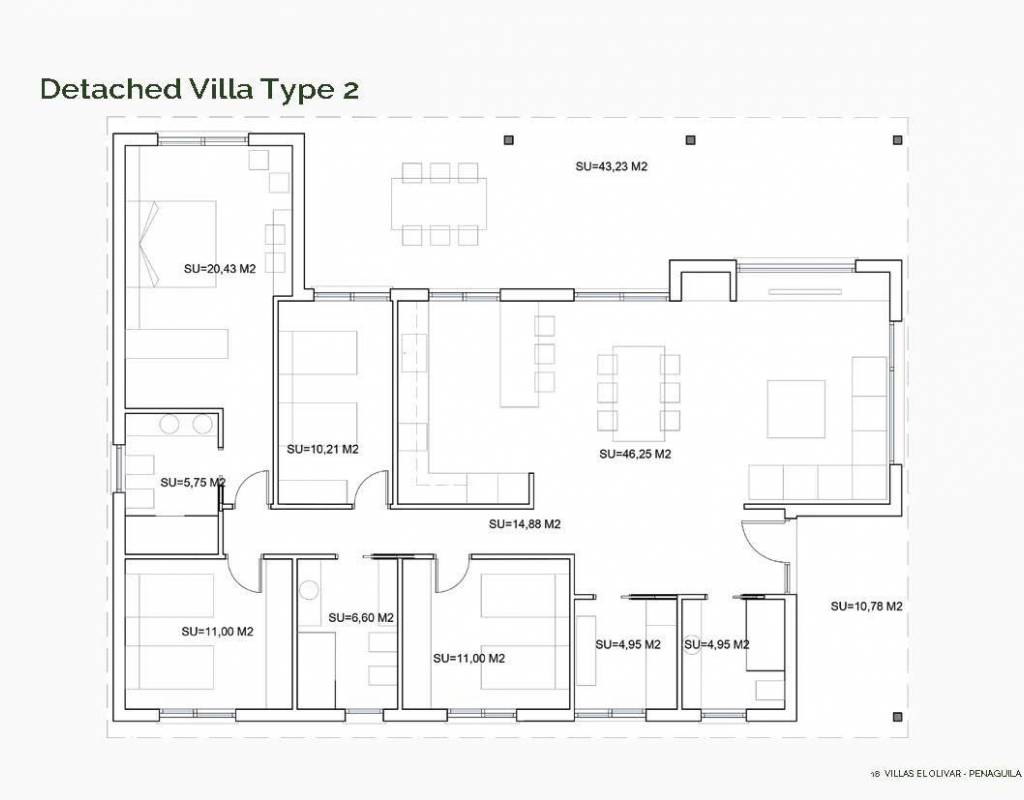 Cada villa se encuentra en una parcela privada de 800 m² y está distribuida en una sola planta, lo que ofrece el máximo confort y accesibilidad. Elija entre 5 distribuciones diferentes con 3 o 4 dormitorios, 2 o 3 baños y superficies construidas que van desde los 130 hasta los 178 m². Todas las viviendas cuentan con amplias terrazas cubiertas, ideales para disfrutar del aire libre durante todo el año.