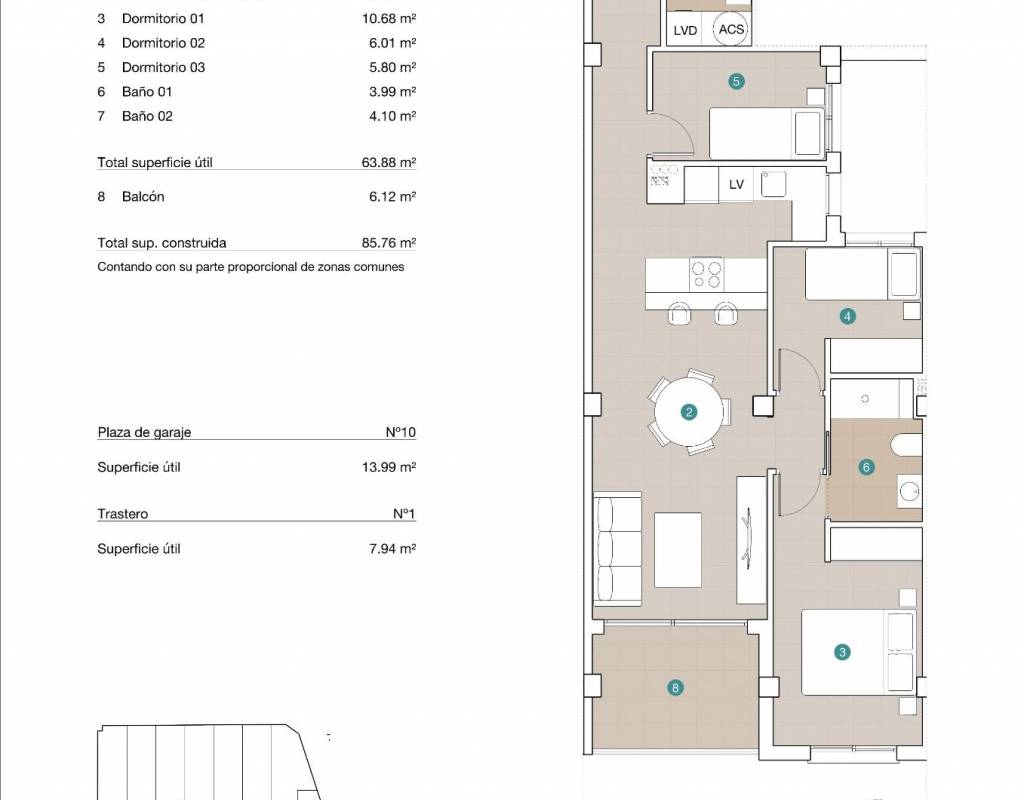 Plaza de aparcamiento privada y trastero incluidos en cada apartamento.