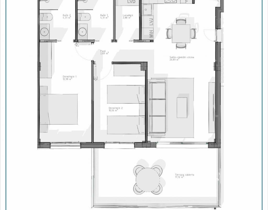 Esta nueva promoción consta de 60 apartamentos de alta calidad distribuidos en 5 bloques de baja densidad, con solo dos viviendas por planta. Elija entre distribuciones de 2 o 3 dormitorios diseñadas pensando en la funcionalidad, el confort y el estilo. Las opciones incluyen: