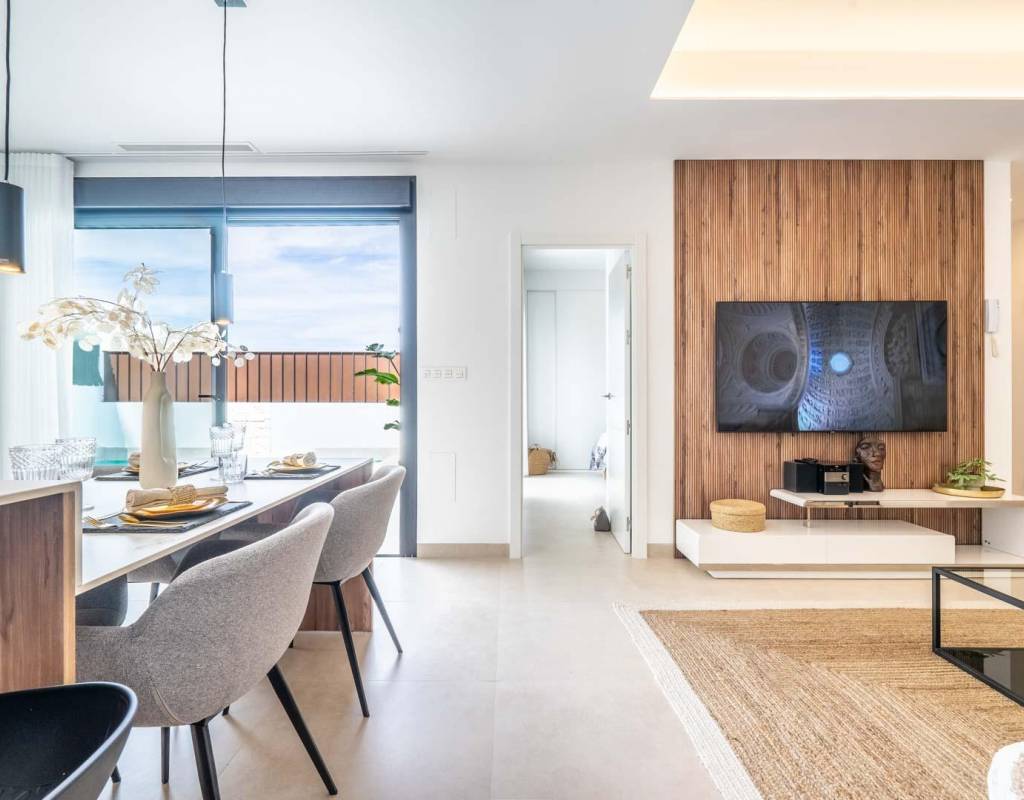 El dormitorio principal incluye un baño en suite, mientras que los dos dormitorios adicionales comparten un baño familiar, todos ellos diseñados con un toque contemporáneo y acabados de alta calidad.