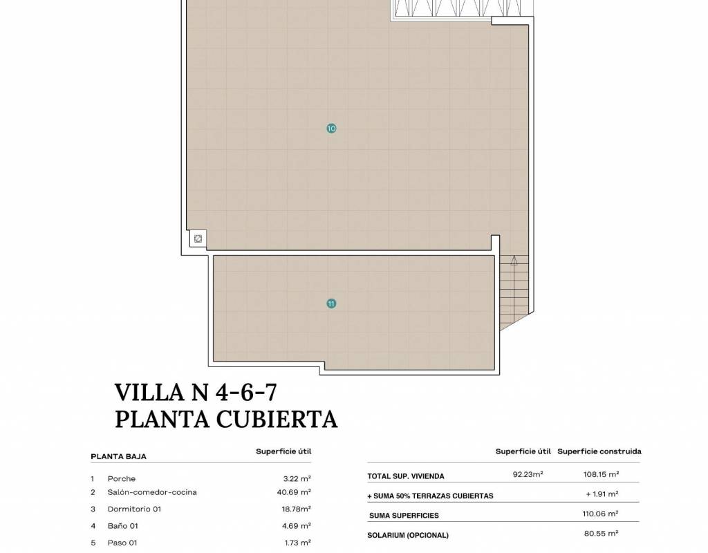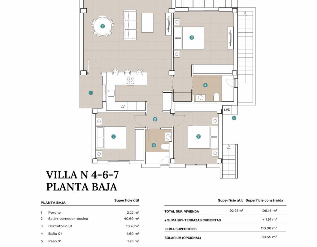 Cada villa está construida en una parcela privada de 432 m², y ofrece la posibilidad de elegir entre distribuciones de una o dos plantas, con la opción de añadir un sótano para disponer de espacio adicional. Todas las viviendas incluyen:
