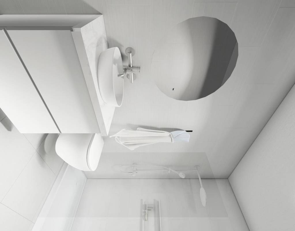 Baños elegantes con muebles suspendidos, espejo con iluminación LED y mamparas en las duchas.