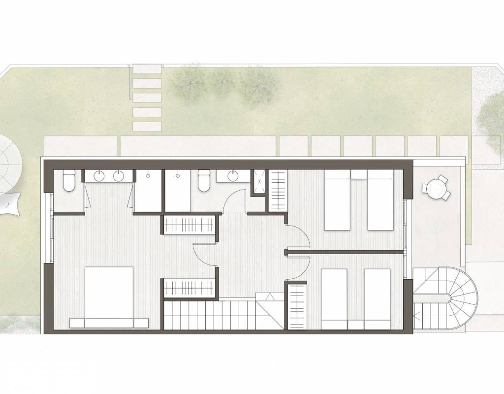 Casas adosadas de 2 o 3 dormitorios, cada una con 2 baños y 1 aseo de invitados