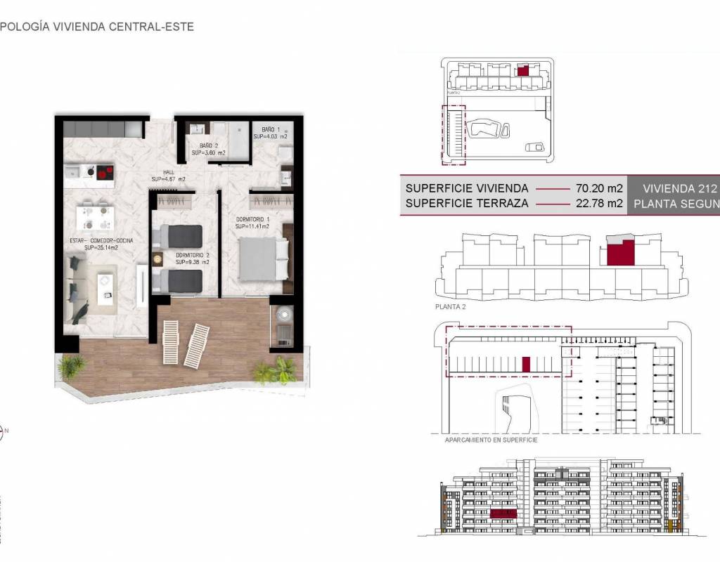 Además, todos los apartamentos incluyen una plaza de aparcamiento designada.