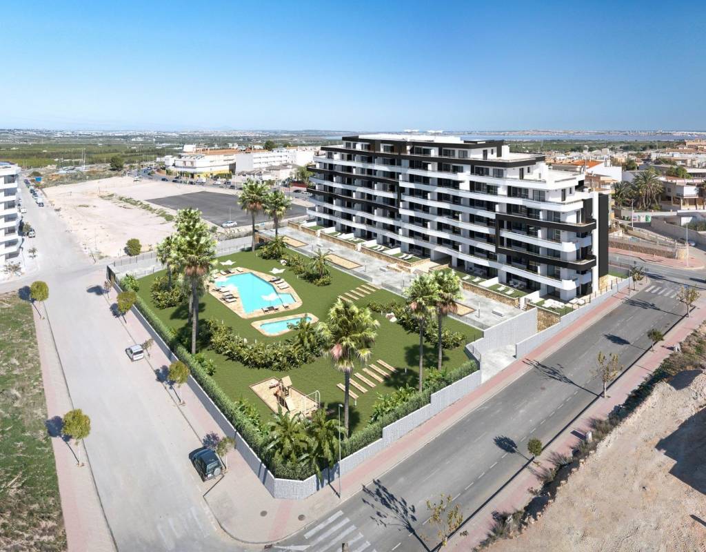 Este complejo residencial de nueva construcción en San Miguel de Salinas ofrece modernos apartamentos de 2 dormitorios con amplias terrazas, cuidadosamente distribuidos en siete plantas. La comunidad vallada ofrece instalaciones de primera categoría, incluyendo piscinas separadas para adultos y niños, exuberantes zonas verdes, un parque infantil y una zona de petanca.