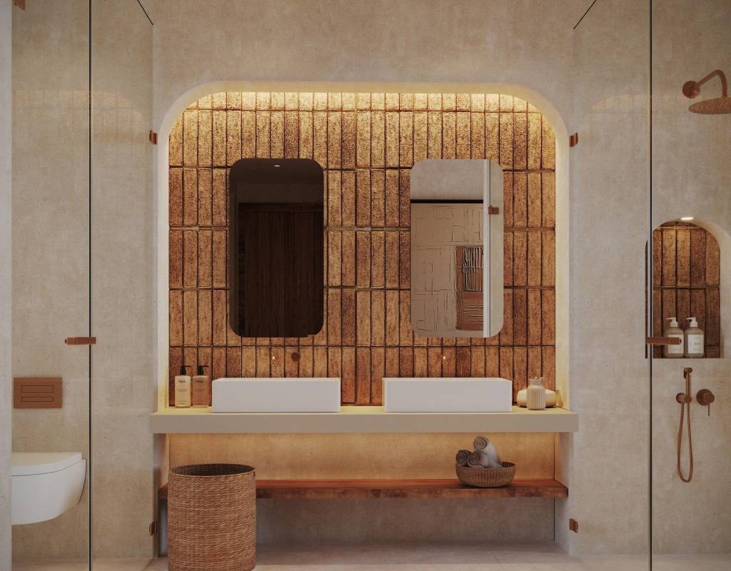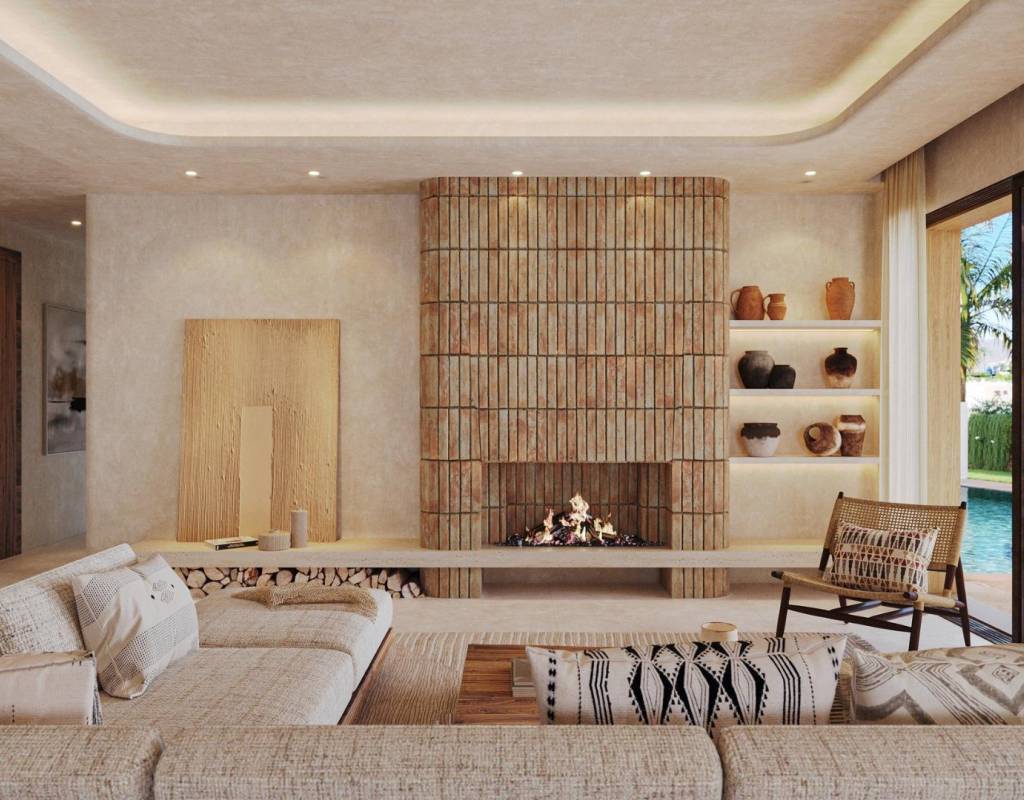 La villa ha sido cuidadosamente diseñada para maximizar el confort y el estilo. En la planta baja, un amplio salón-comedor conecta a la perfección con una cocina totalmente equipada, creando un espacio diáfano, luminoso y acogedor. Esta planta también incluye un ascensor para mayor comodidad, un aseo de invitados y un pasillo central que conecta todas las zonas.
