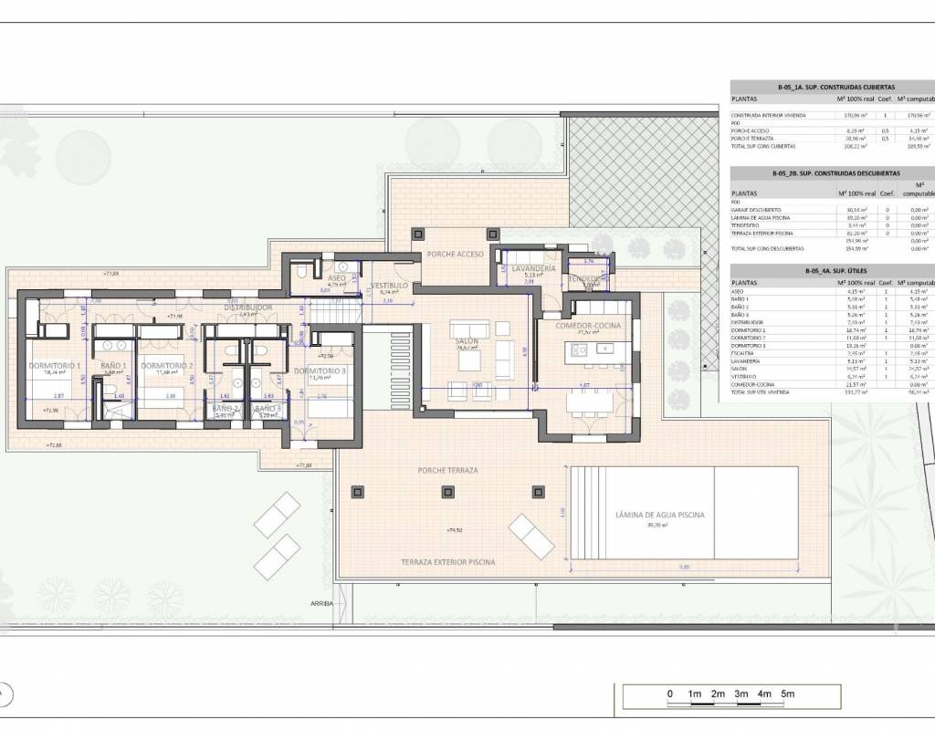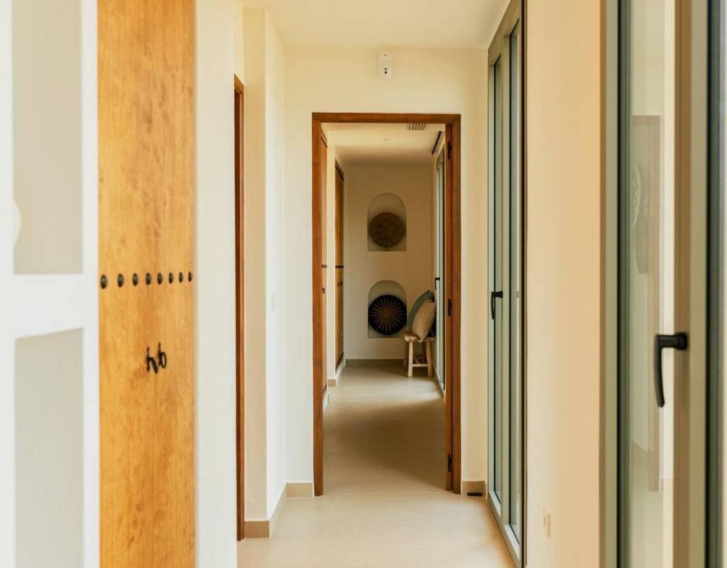 Construida en una generosa parcela de 1000 m2, la villa se distribuye en una sola planta para ofrecer el máximo confort. Incluye un luminoso salón-comedor, una cocina totalmente equipada, un lavadero, tres amplios dormitorios con armarios empotrados, tres baños en suite y un aseo de invitados. Cada detalle ha sido cuidadosamente seleccionado, con elementos de piedra natural hechos a mano y vigas de madera que reflejan el encanto tradicional de la Costa Blanca Norte.