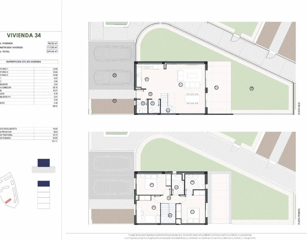 Las casas adosadas cuentan con una moderna distribución diáfana. La planta baja integra una amplia cocina, comedor y sala de estar llenos de luz natural, así como un aseo de invitados. En la planta superior, los dormitorios dobles y los baños completamente equipados proporcionan comodidad y privacidad para toda la familia.