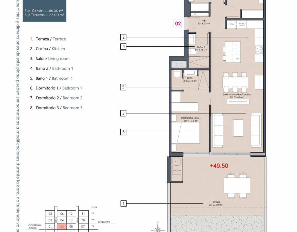 3 dormitorios y 2 baños con materiales de alta calidad.