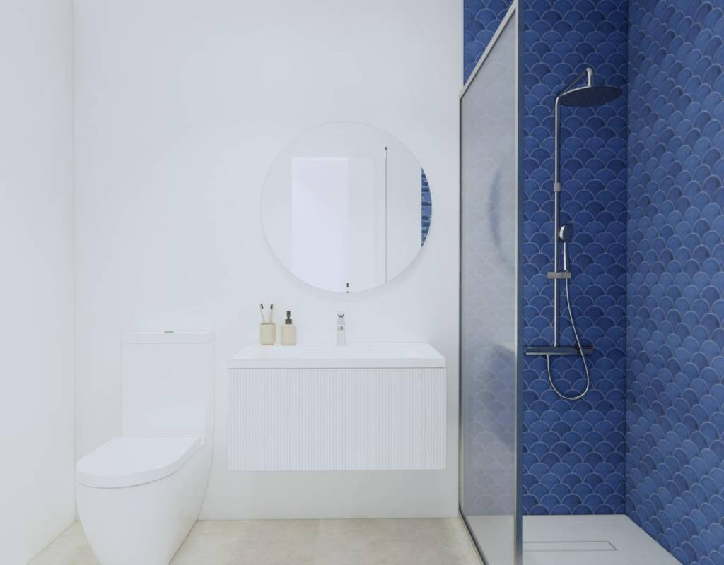 Baños modernos equipados con muebles, espejos y mamparas de ducha
