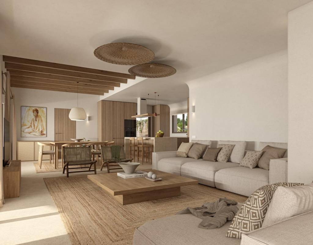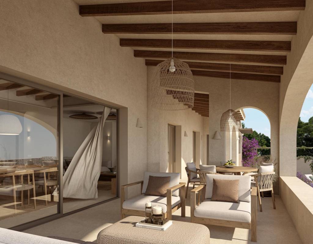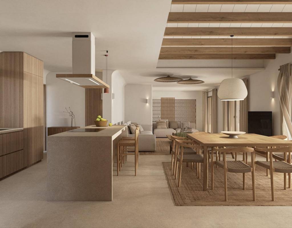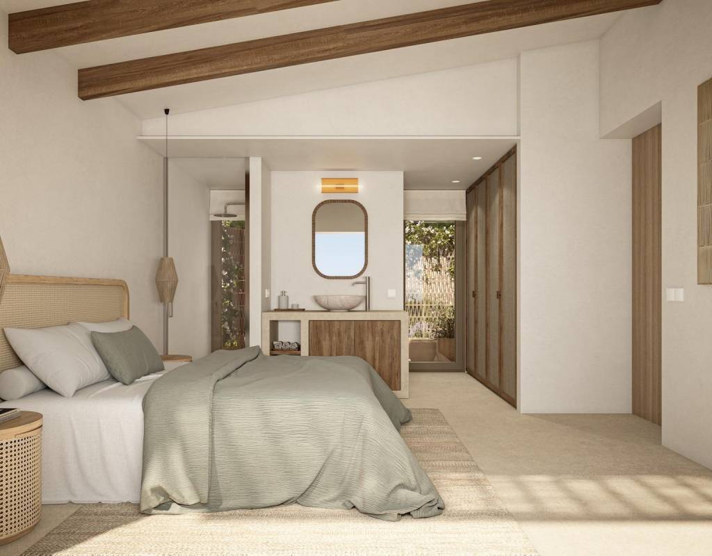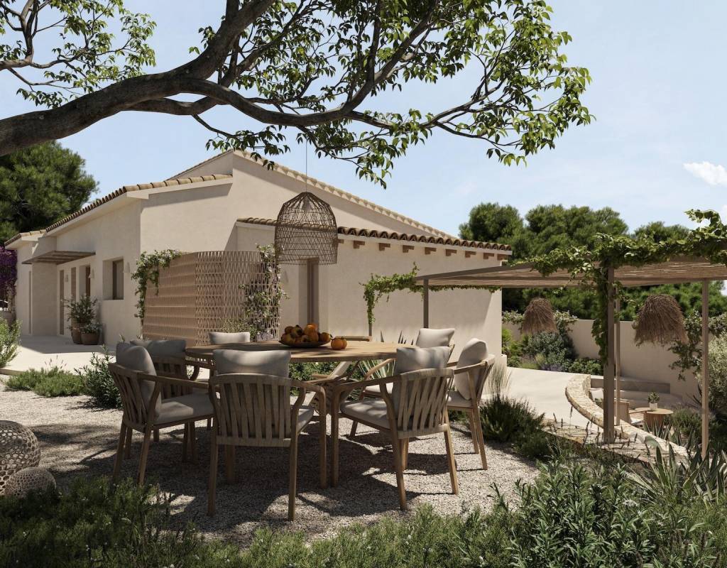 La casa original, con sus paredes encaladas y sus tejados tradicionales, ofrecía la estructura básica de una vivienda mediterránea clásica. Hoy en día, ha sido completamente rediseñada: una reinterpretación escultórica donde convergen la luz, el espacio y la naturaleza. La renovación abrió amplias ventanas, redefinió los espacios e introdujo materiales nobles y táctiles que transmiten comodidad y autenticidad.