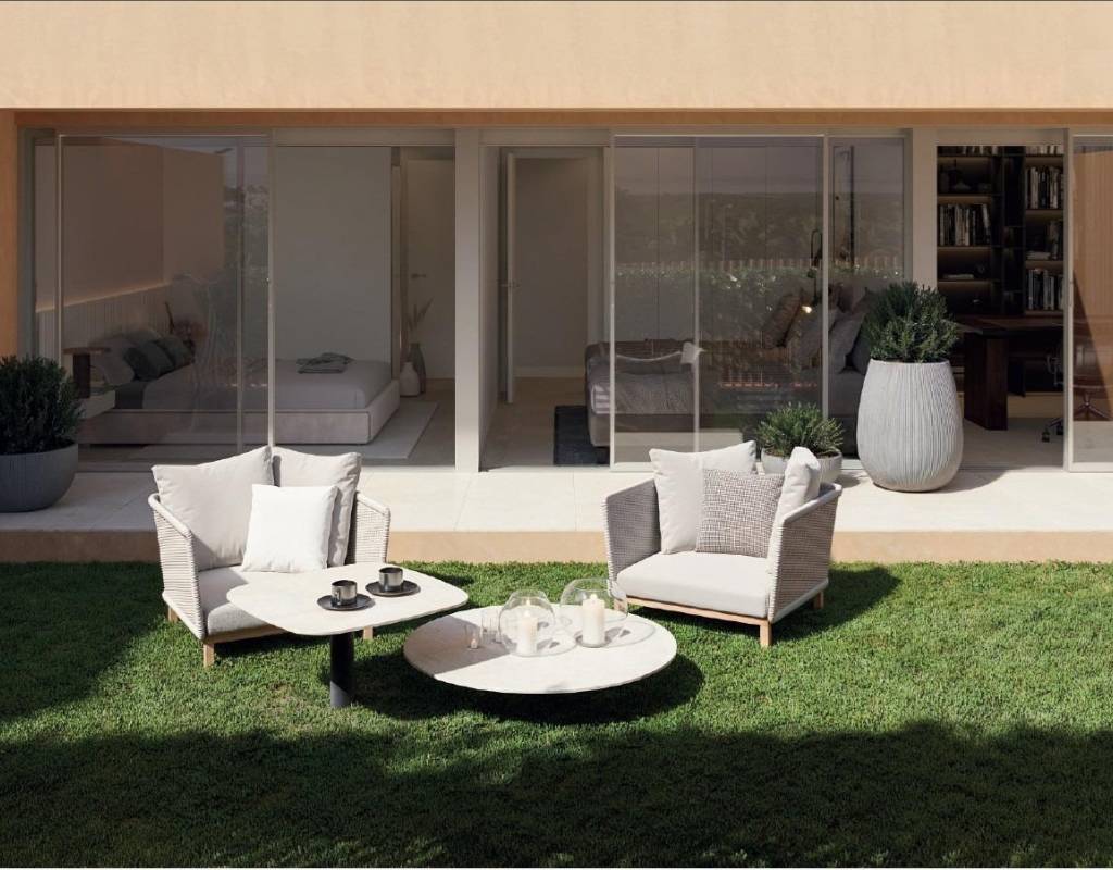 Los compradores pueden elegir entre apartamentos en planta baja con jardín privado o viviendas en plantas superiores con una amplia terraza y solárium privado. Estas distribuciones están diseñadas para maximizar la luz natural y proporcionar cómodos espacios interiores y exteriores para disfrutar del clima mediterráneo durante todo el año.
