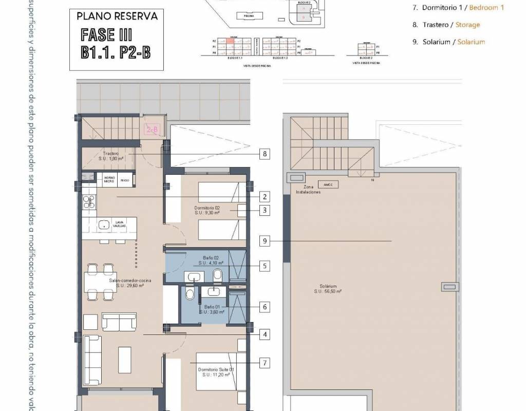 La promoción consta de 29 viviendas modernas de 2 o 3 dormitorios, diseñadas con líneas arquitectónicas limpias y acabados de alta calidad. Los compradores pueden elegir entre apartamentos en planta baja con jardín y terraza privados, viviendas en plantas intermedias con amplias terrazas o áticos con terraza privada y solárium en la azotea con vistas panorámicas. Muchas de las propiedades disfrutan de vistas al campo de golf Serena y al Mar Menor, lo que crea un entorno tranquilo y agradable.