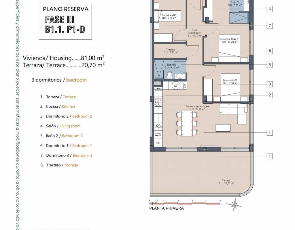 La promoción consta de 29 viviendas modernas de 2 o 3 dormitorios, diseñadas con líneas arquitectónicas limpias y acabados de alta calidad. Los compradores pueden elegir entre apartamentos en planta baja con jardín y terraza privados, viviendas en plantas intermedias con amplias terrazas o áticos con terraza privada y solárium en la azotea con vistas panorámicas. Muchas de las propiedades disfrutan de vistas al campo de golf Serena y al Mar Menor, lo que crea un entorno tranquilo y agradable.