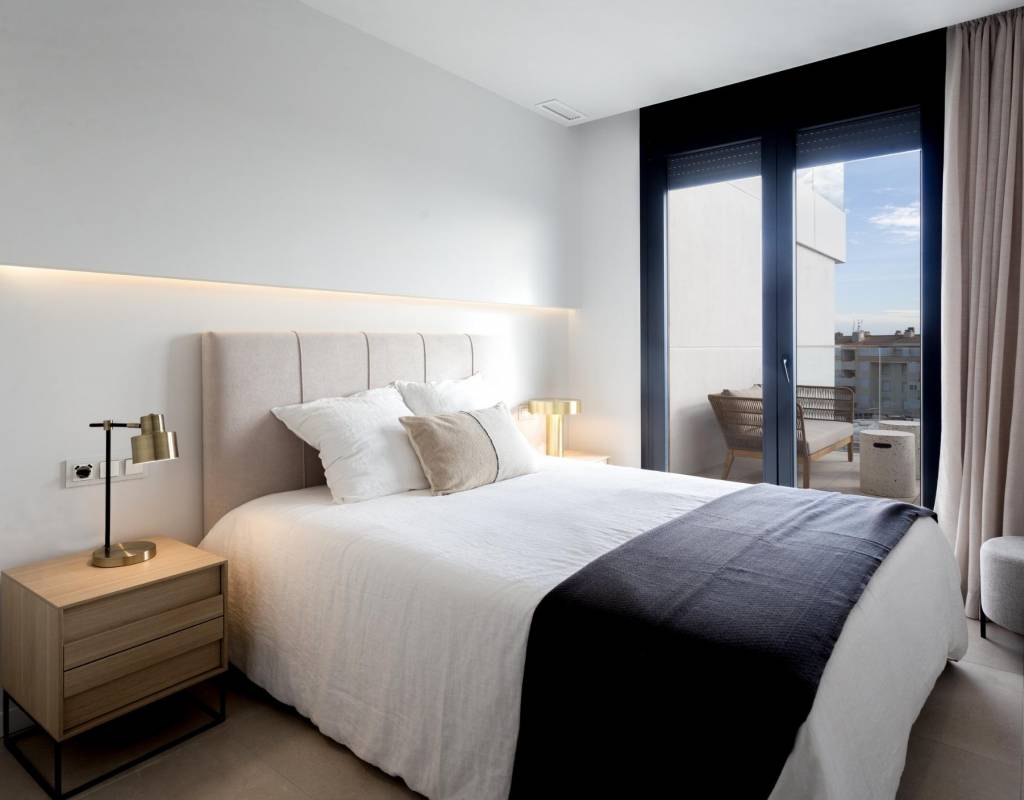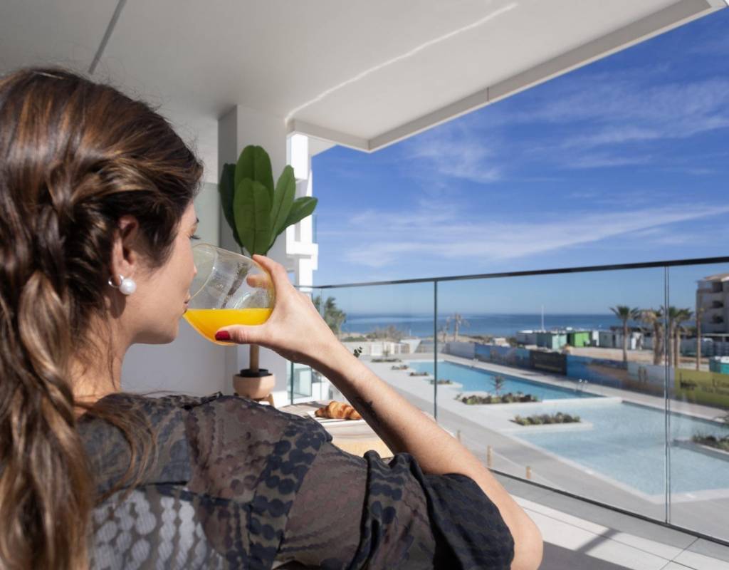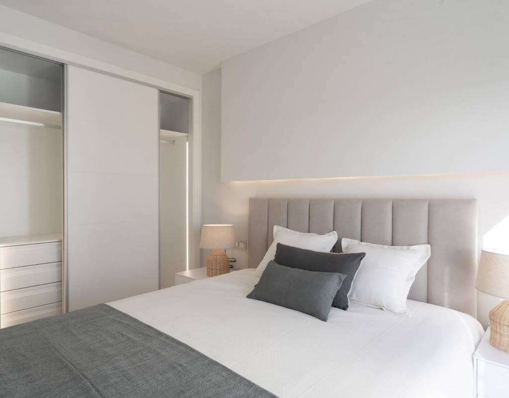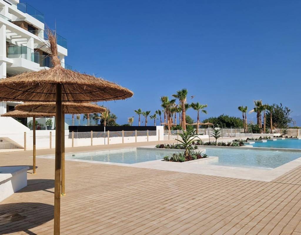 Apartamentos y áticos de dos y tres dormitorios , todos con vistas al mar. Magnificas zonas comunes con una gran zona ajardinada y dos piscinas, una para niños.