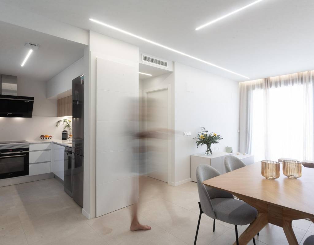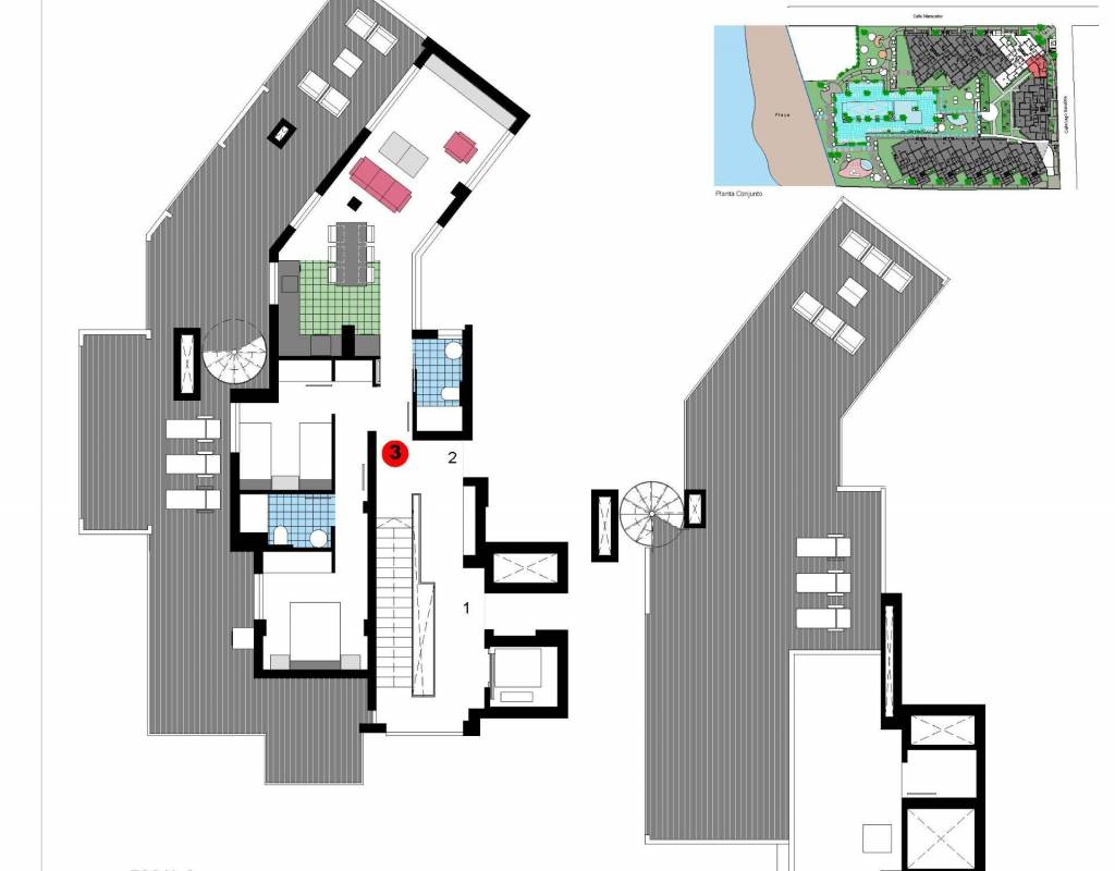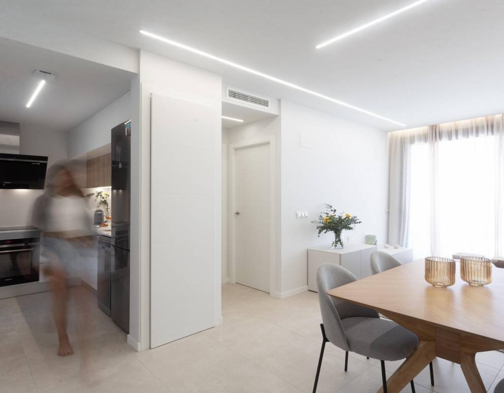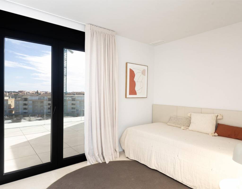 Apartamentos y áticos de dos y tres dormitorios , todos con vistas al mar. Magnificas zonas comunes con una gran zona ajardinada y dos piscinas, una para niños.
