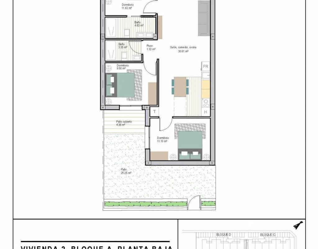 La promoción consta de 72 apartamentos de 2 y 3 dormitorios y 2 baños, uno de ellos en suite, distribuidos en cuatro modernos edificios. También está prevista una segunda fase con bungalows y villas, lo que añadirá aún más valor y atractivo a la zona.