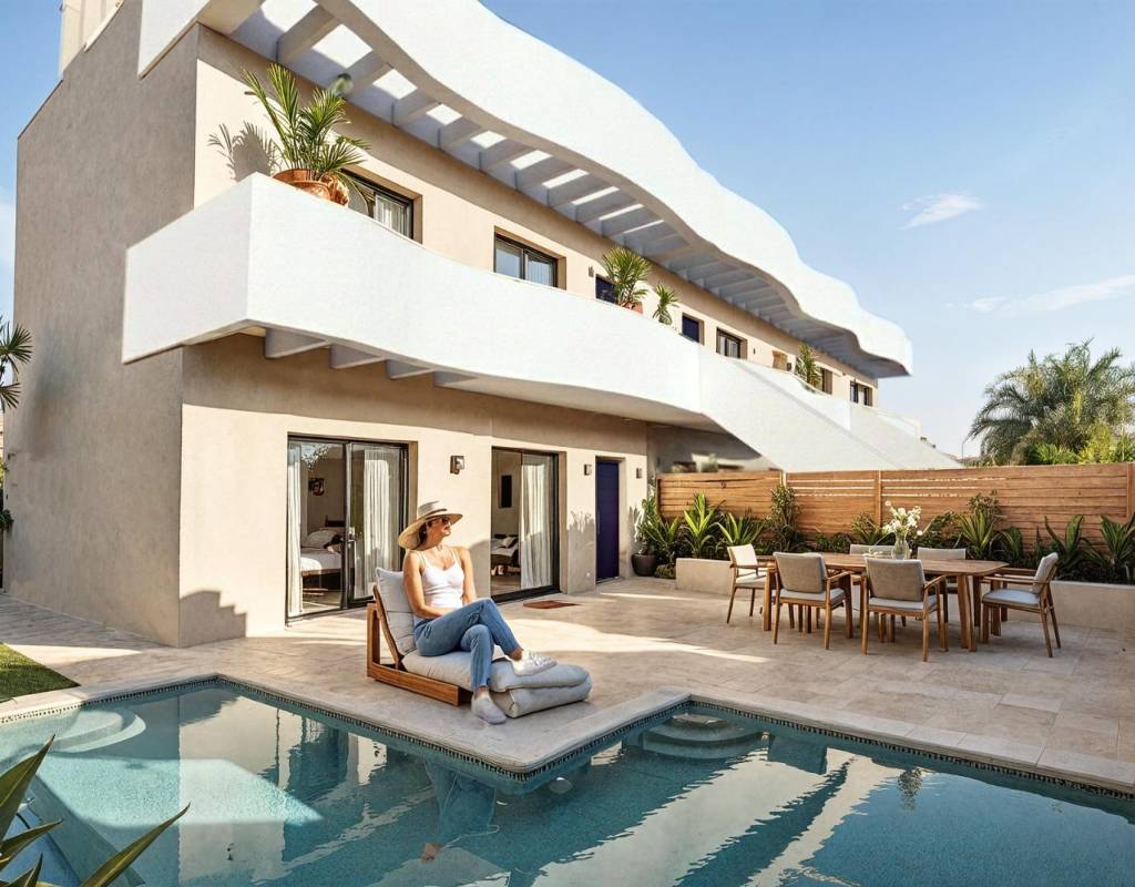 Bungalows de nueva construcción de estilo boutique con piscina privada en Pilar de la Horadada, a 2 km de la playa