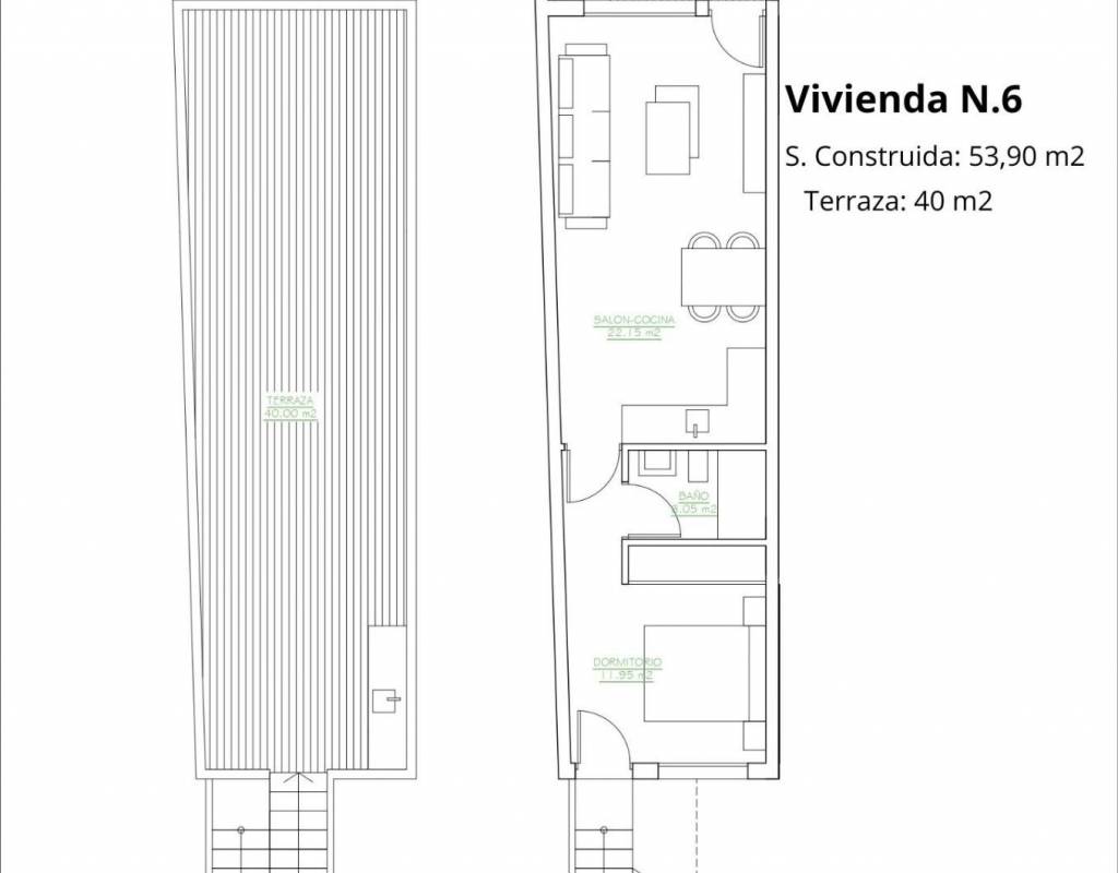 Solárium privado en las viviendas de planta alta, con cocina de verano
