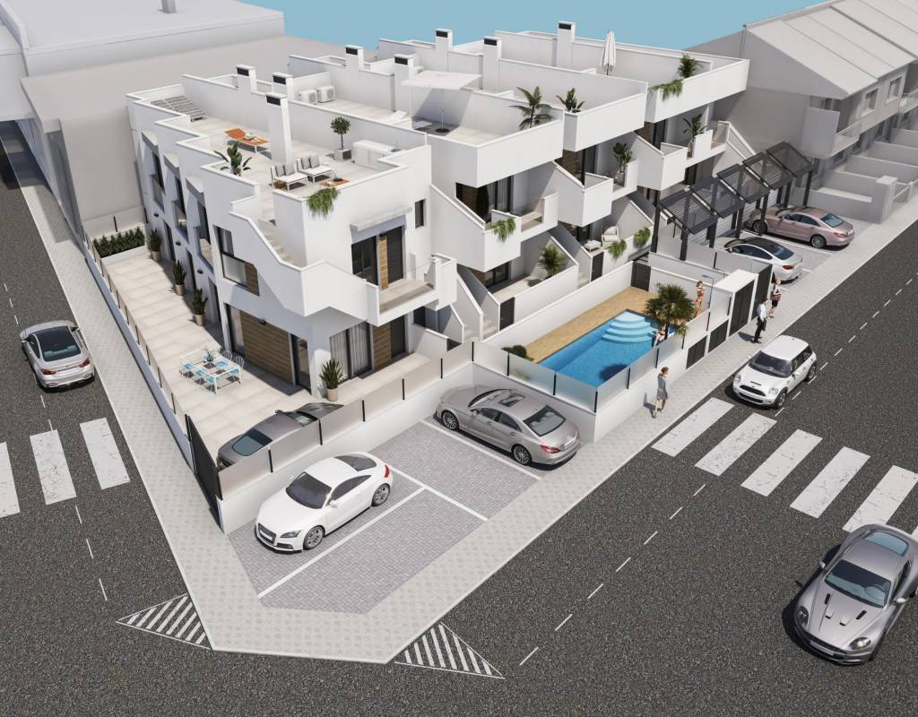 Esta nueva promoción de bungalows se encuentra en San Pedro del Pinatar, uno de los destinos más atractivos de la Costa Cálida, Murcia. Rodeado de todos los servicios, zonas deportivas y varios campos de golf, este complejo está situado a solo 5 minutos de las playas del Mar Mediterráneo y del Mar Menor, dos de los enclaves costeros más populares del sureste español.