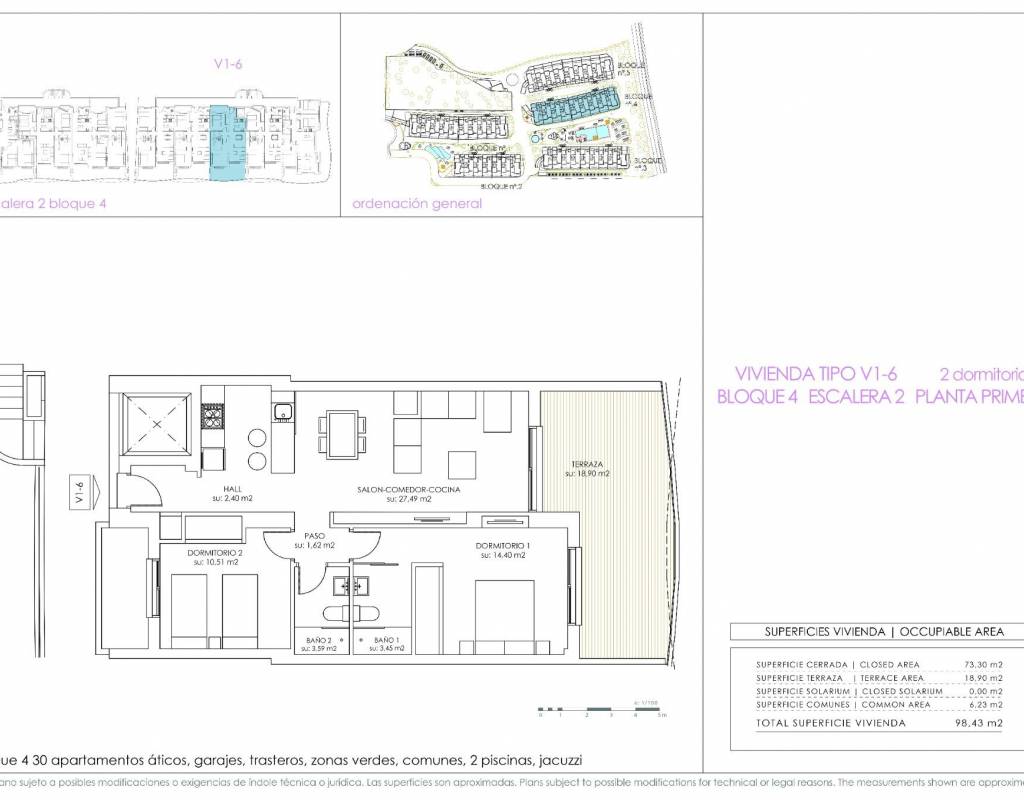 Grote verscheidenheid aan typen om uit te kiezen: appartementen met 2, 3 of 4 slaapkamers. Lage verdiepingen met privétuinen of bovenste verdiepingen met privésolariums. Alle woningen hebben een parkeerplaats en een berging inbegrepen in de prijs.