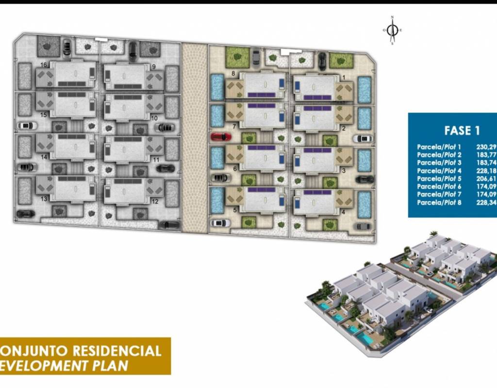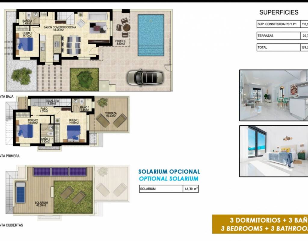Villa's met 3 slaapkamers, 3 badkamers, een open woonkamer met de keuken, privé tuin met het zwembad en parkeerplaats.