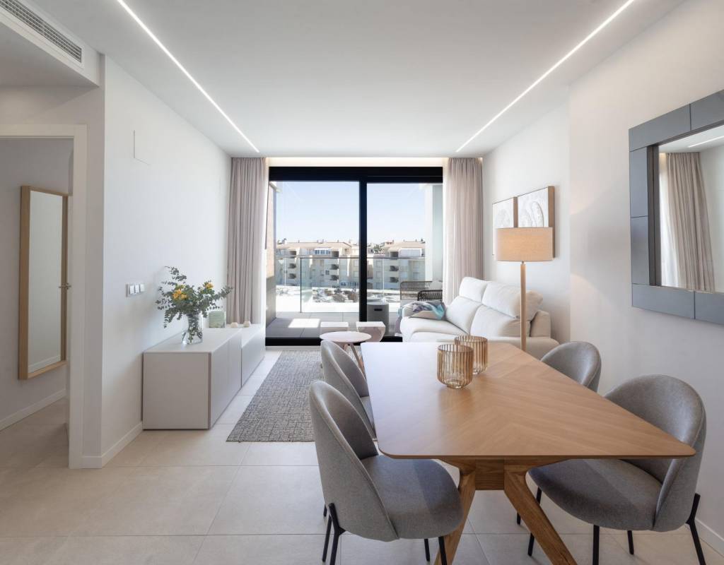 Appartementen en penthouses met twee en drie slaapkamers, allemaal met uitzicht op zee. Prachtige gemeenschappelijke ruimtes met een grote tuin en twee zwembaden, één voor kinderen.