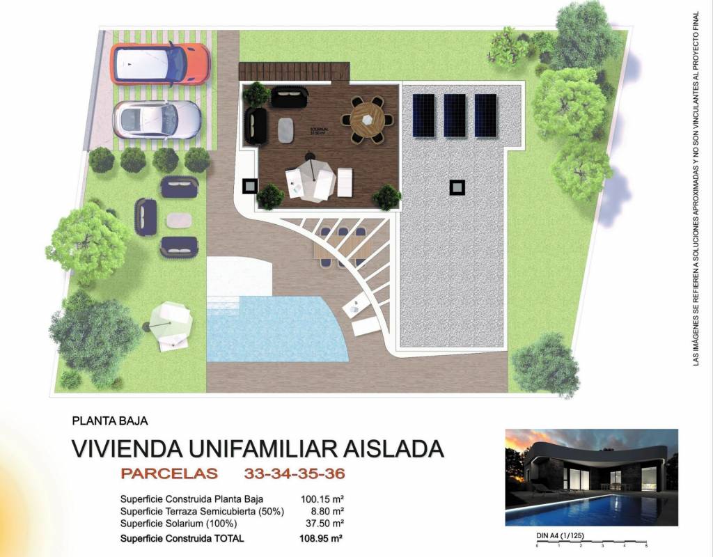 Dit project heeft 32 villa's, sommige halfvrijstaand op 2 verdiepingen en andere onafhankelijk op een enkele verdieping, die worden geleverd met de beste apparatuur, waaronder solarium, badschermen, tuin afgewerkt met kunstgras van de beste kwaliteit, decoratieve tuinelementen, en pre-installatie voor zonnepanelen, stopcontact en deurmotor voor voertuigen.