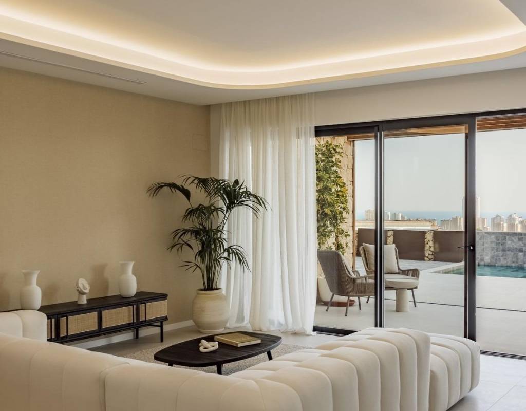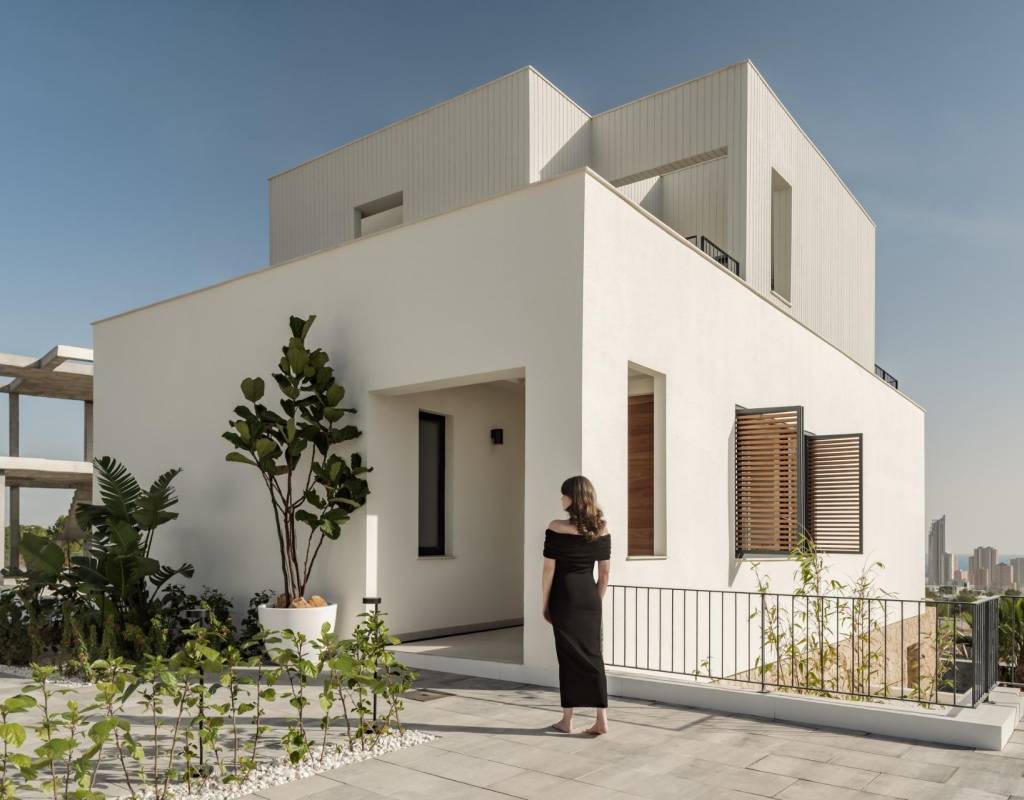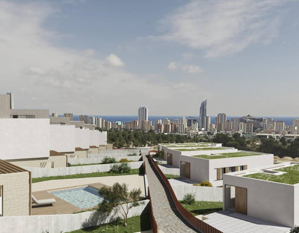 Villa's met 4 slaapkamers en 4 badkamers, open keuken met zithoek, terras met prachtig uitzicht over Benidorm, privétuin met zwembad en parkeerplaats.