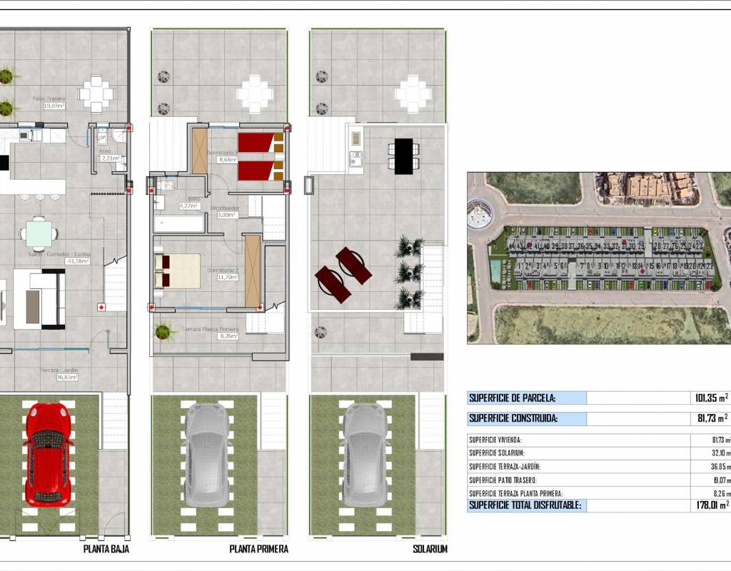 Elke woning wordt geleverd met een aangelegde tuin, LED-verlichting, elektrische rolluiken, zonnepanelen pre-installatie, ingebouwde kasten, een beveiligde deur, een volledig uitgeruste keuken met Silestone werkbladen, en nog veel meer.