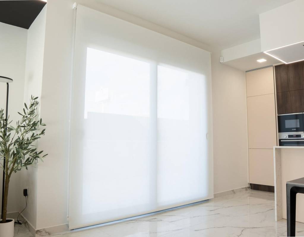 PVC ramen met dubbele beglazing en op afstand bedienbare gemotoriseerde rolluiken.