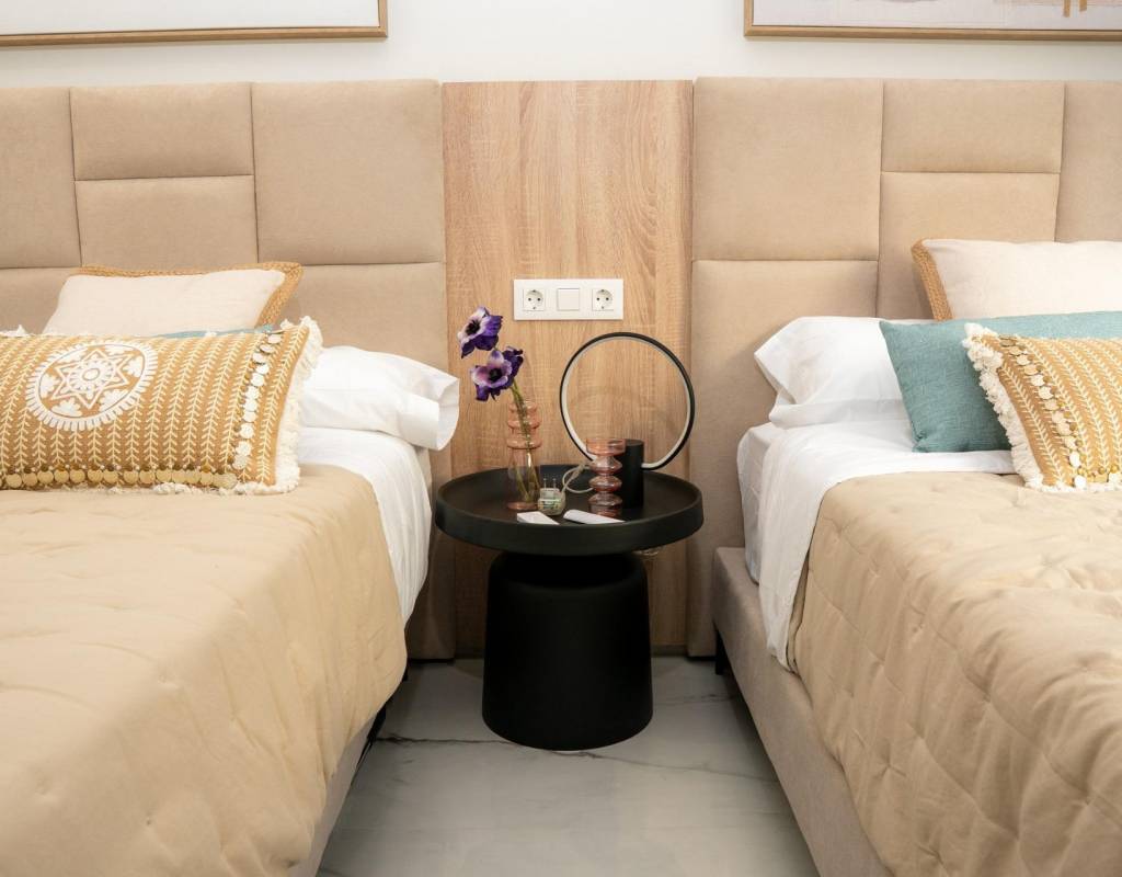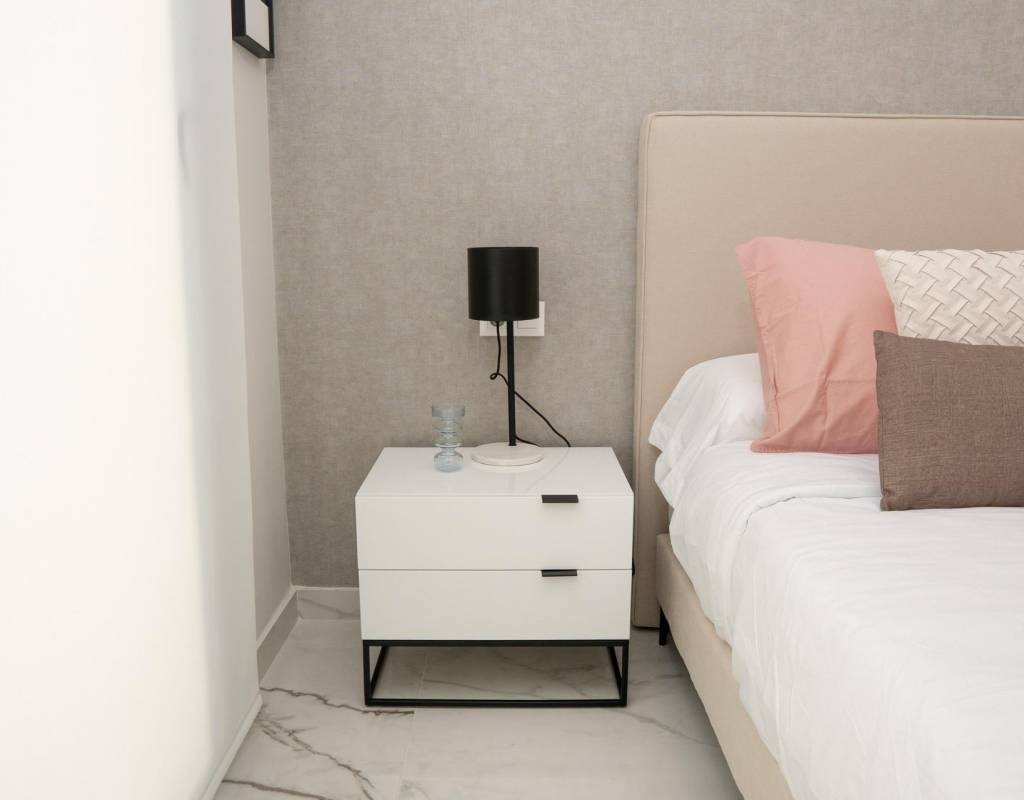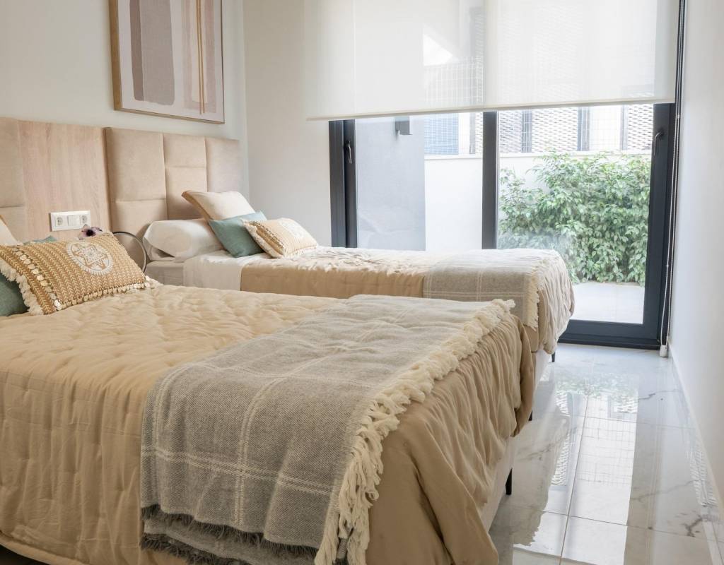 Bungalows: Units op de begane grond met een privétuin of op de bovenste verdieping met een solarium. Alle bungalows hebben twee slaapkamers, twee badkamers, een parkeerplaats en een berging, gelegen rond een centrale gemeenschappelijke ruimte met een zwembad en aangelegde tuinen.