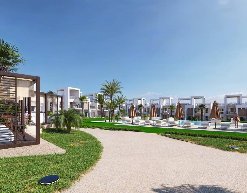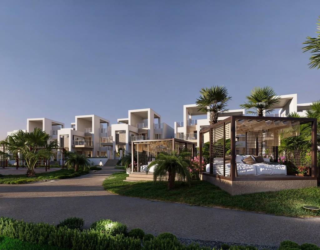 De woningen op de begane grond hebben een privétuin, terwijl de woningen op de bovenste verdieping een privésolarium hebben met voorinstallatie voor een jacuzzi en buitendouche. Bovendien heeft het project gemeenschappelijke zwembaden omgeven door tuinen, waardoor een perfecte omgeving voor ontspanning en gezelligheid ontstaat.