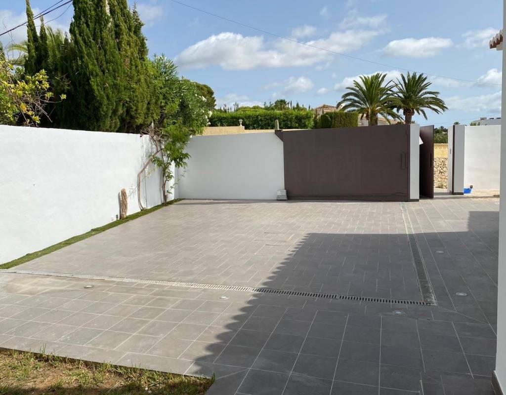 De buitenkant van de villa is ontworpen om optimaal te kunnen genieten van de mediterrane levensstijl, met ruime terrassen, een uniek gevormd privézwembad met buitendouche en een onderhoudsvriendelijke tuin met automatische irrigatie. Er is voldoende ruimte om buiten te eten, te zonnen en familie en vrienden te ontvangen.