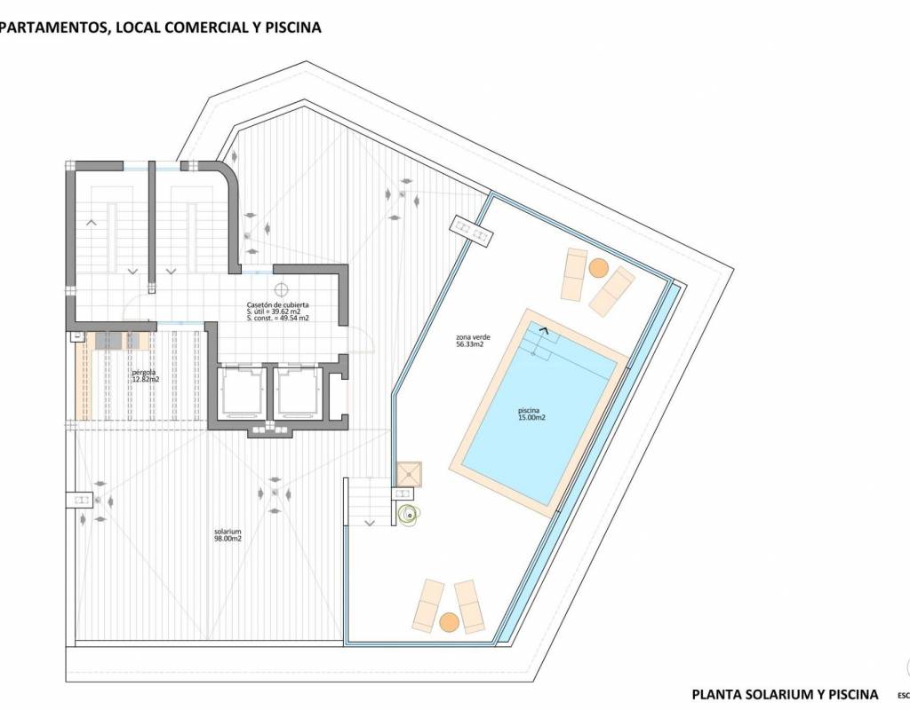Gemeenschappelijke ruimtes op het dak met zwembad en solarium